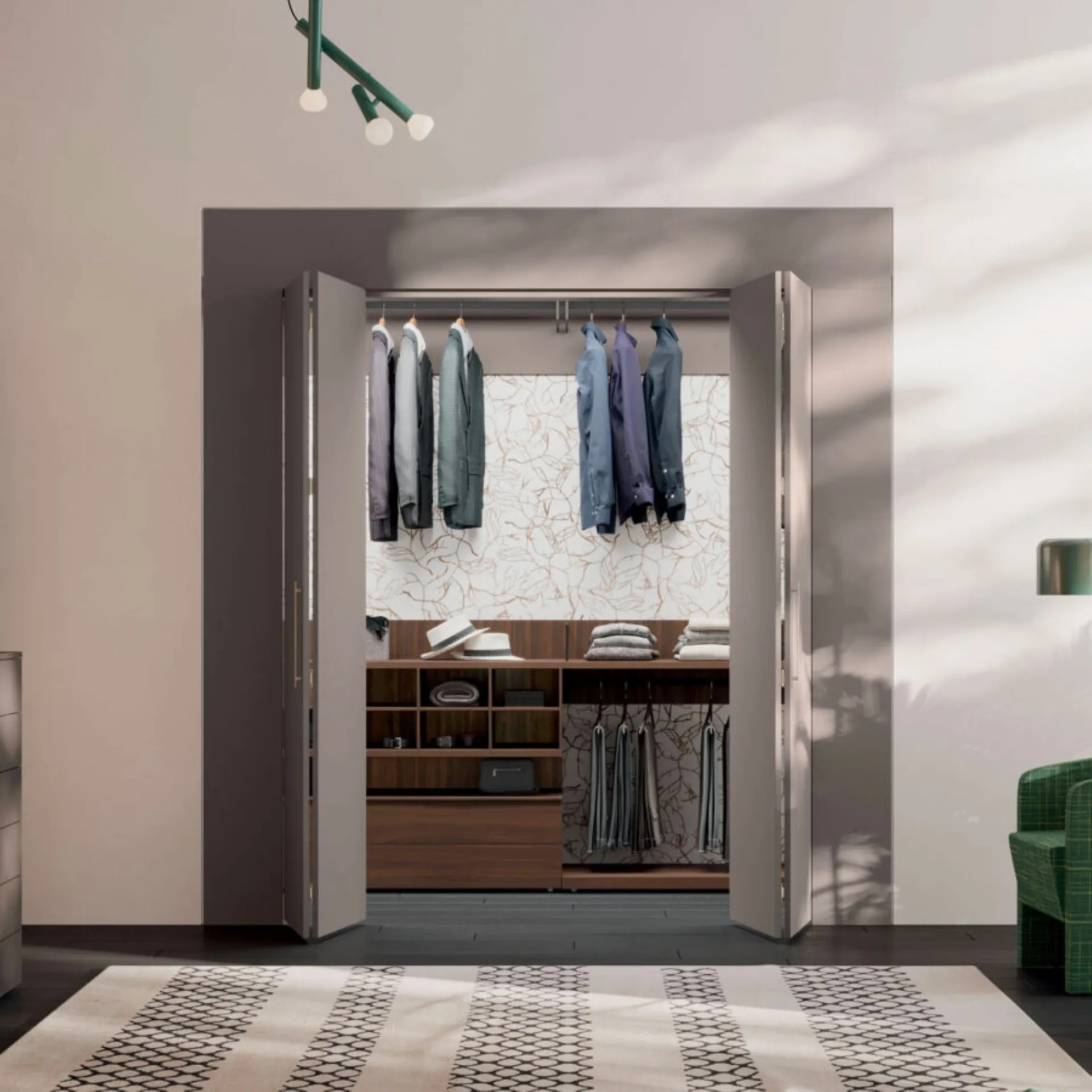 Se vuoi una zona del riposo ammobiliata al meglio, scegli l'armadio Alea Cabina Armadio con Portale con ante a soffietto di Orme!