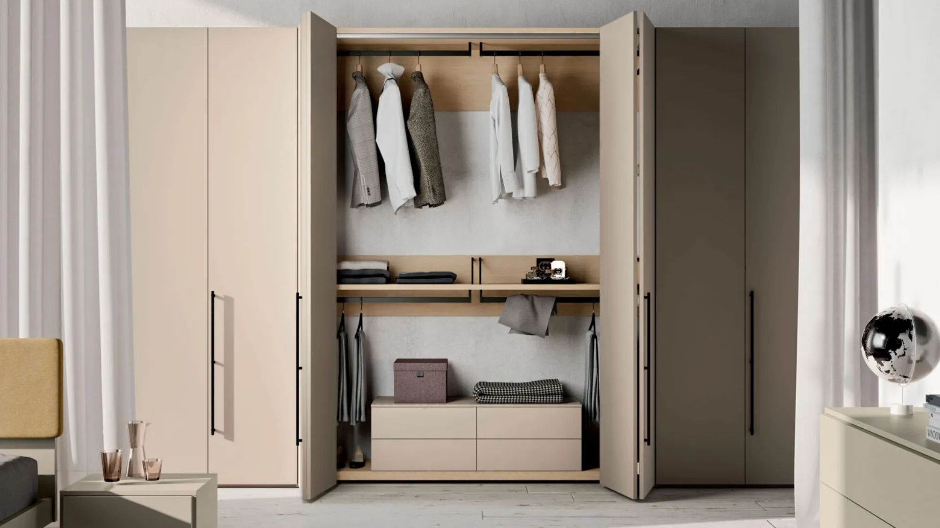 Cerchi un'armadiatura Liscia M34 Orme? Clicca subito! Gli armadi a muro con ante a soffietto ti attendono.