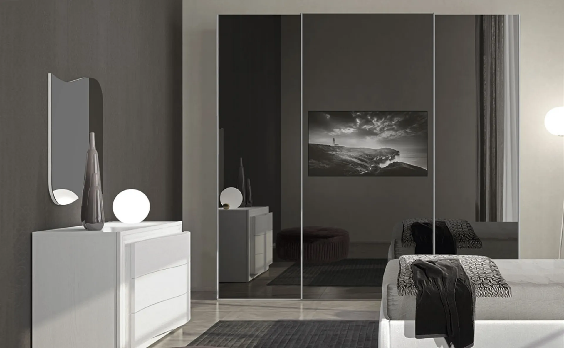 Eccoti l'armadio Riflessi in vetro di Adriatica! Un ricco catalogo di armadi a muro con ante scorrevoli.
