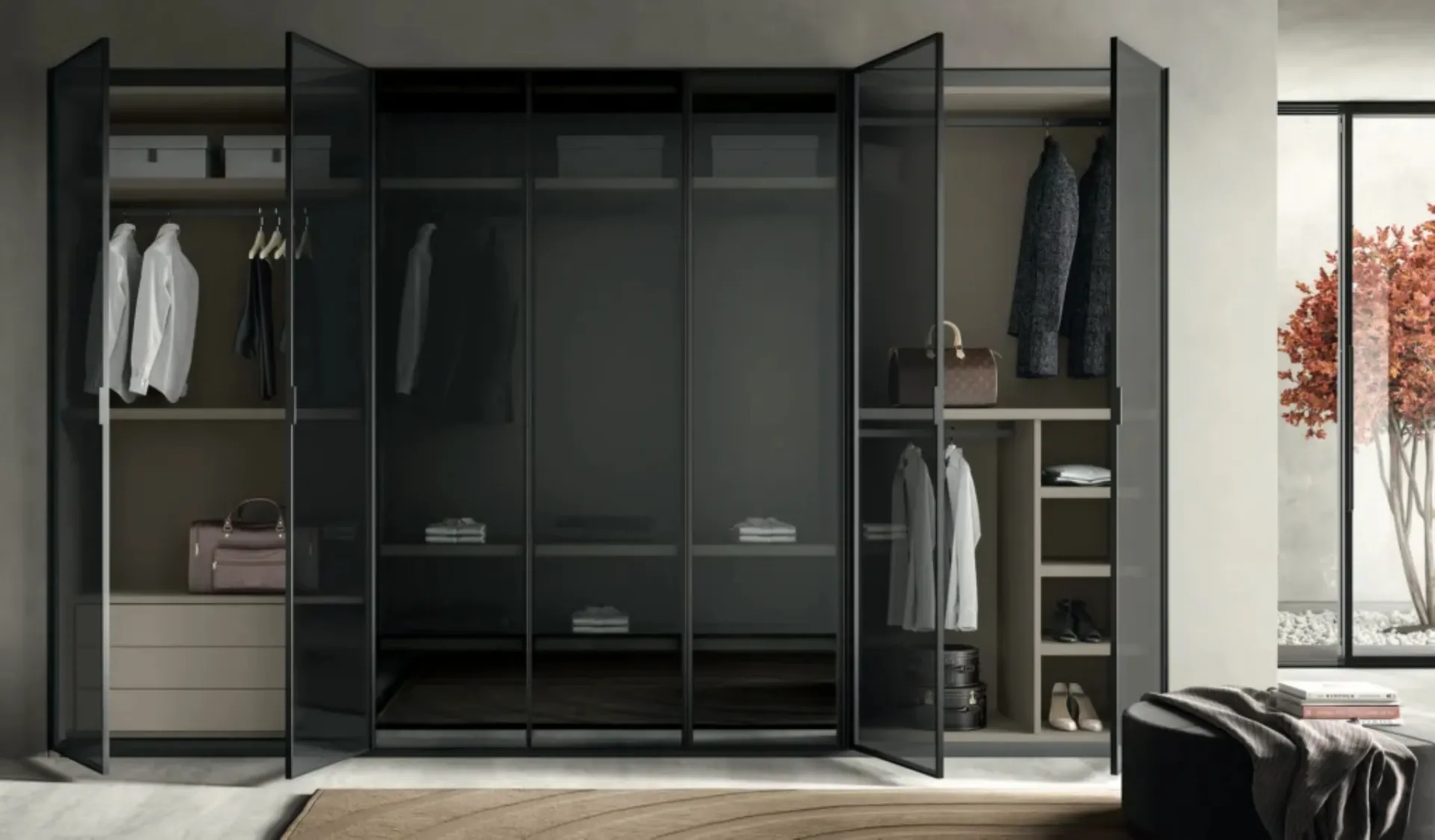 Cerchi un armadio in vetro? Clicca e scopri armadi a muro con ante battenti di Artigianmobili.