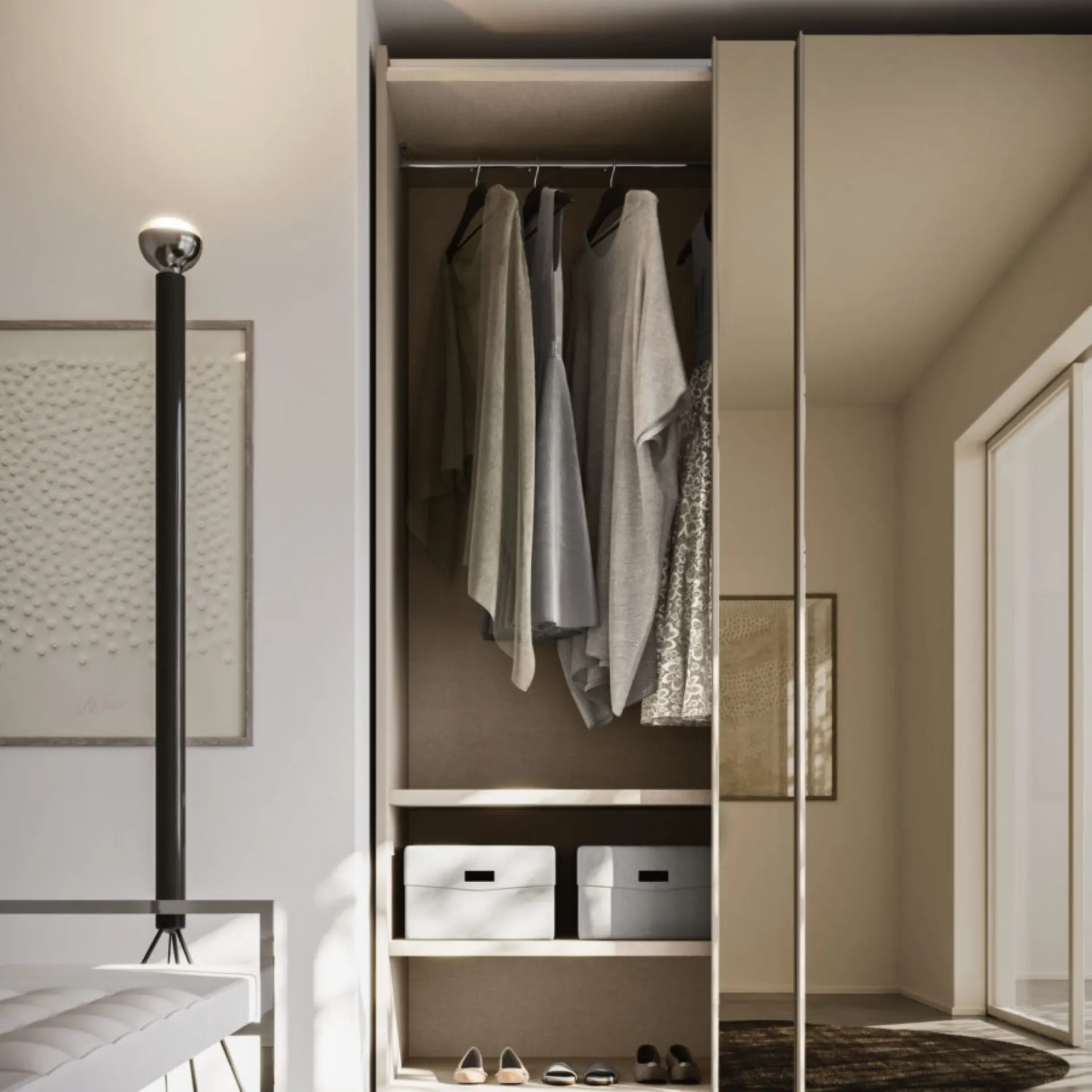 Cerchi un'armadiatura Specchio Scorrevole Orme? Clicca subito! Gli armadi a muro con ante scorrevoli ti attendono.