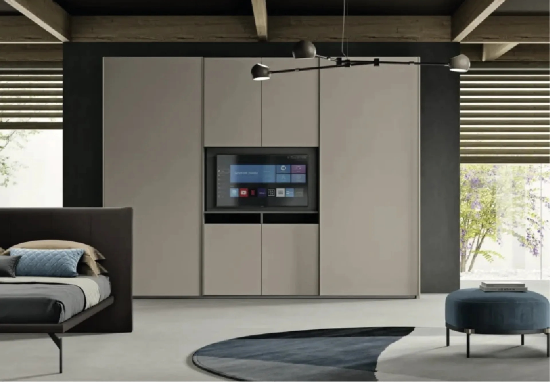 Se desideri armadi a muro con ante scorrevoli, clicca e scopri l'armadio Young TV di Artigianmobili in melaminico.