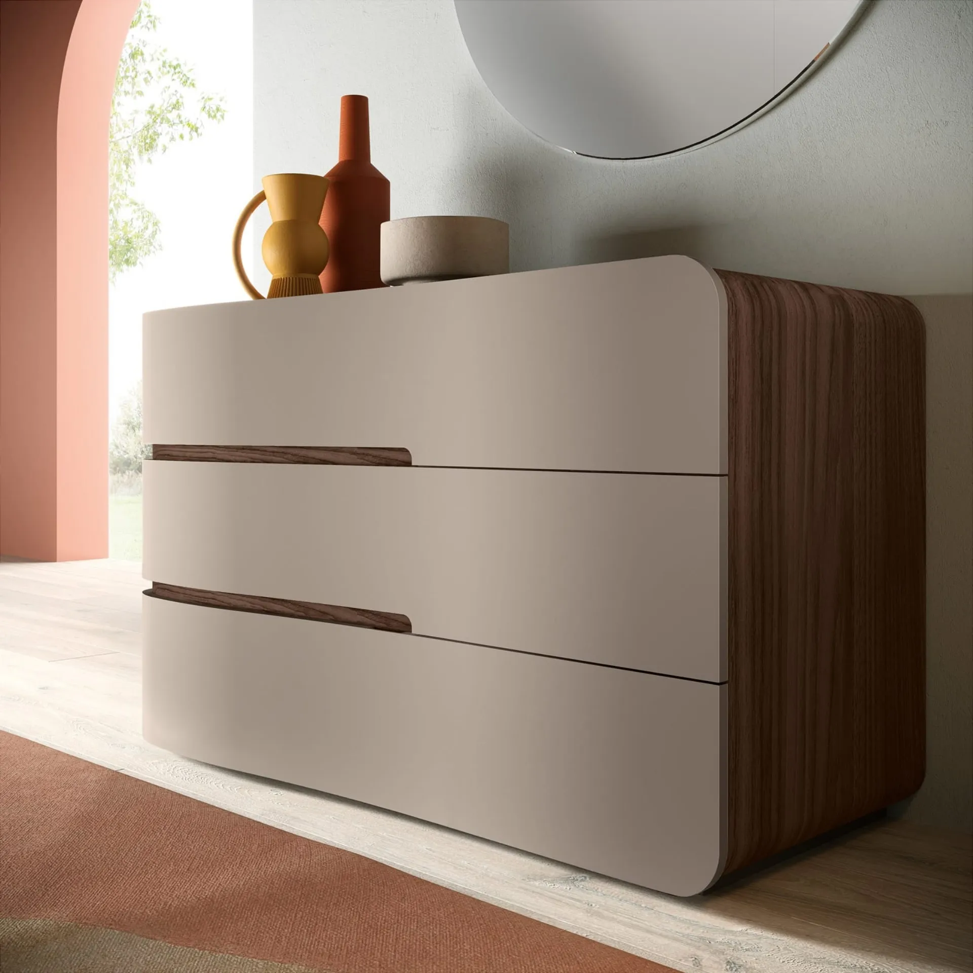 Vuoi progettare la zona notte con Comodini e mobili con cassetti di Adriatica? Ecco qui il modello Comò Betty in melaminico per spazi design.
