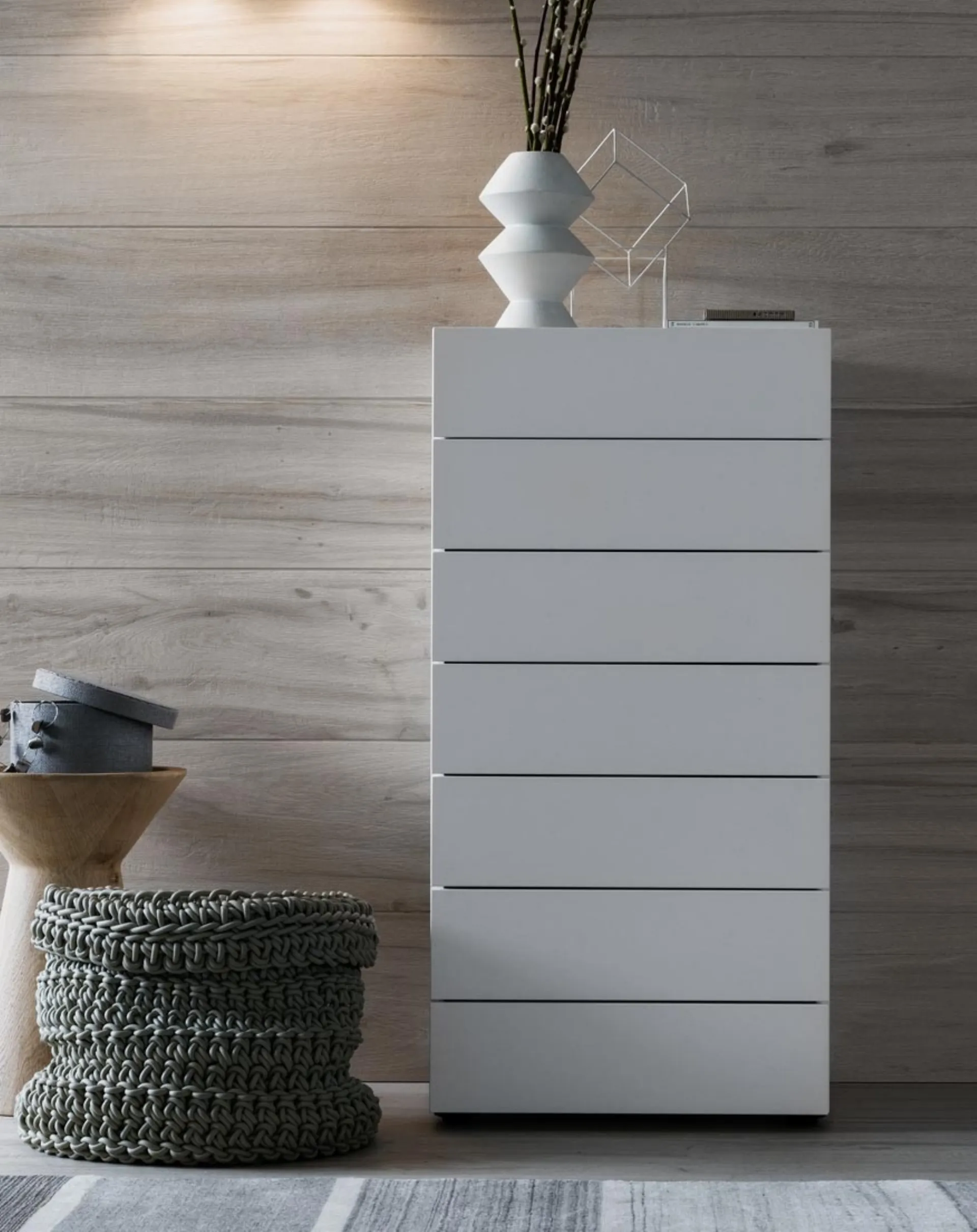 Scopri Comodini moderni e cassettiere Giellesse! Il modello Cube Settimanale realizzato in laccato opaco è la soluzione ottimale.