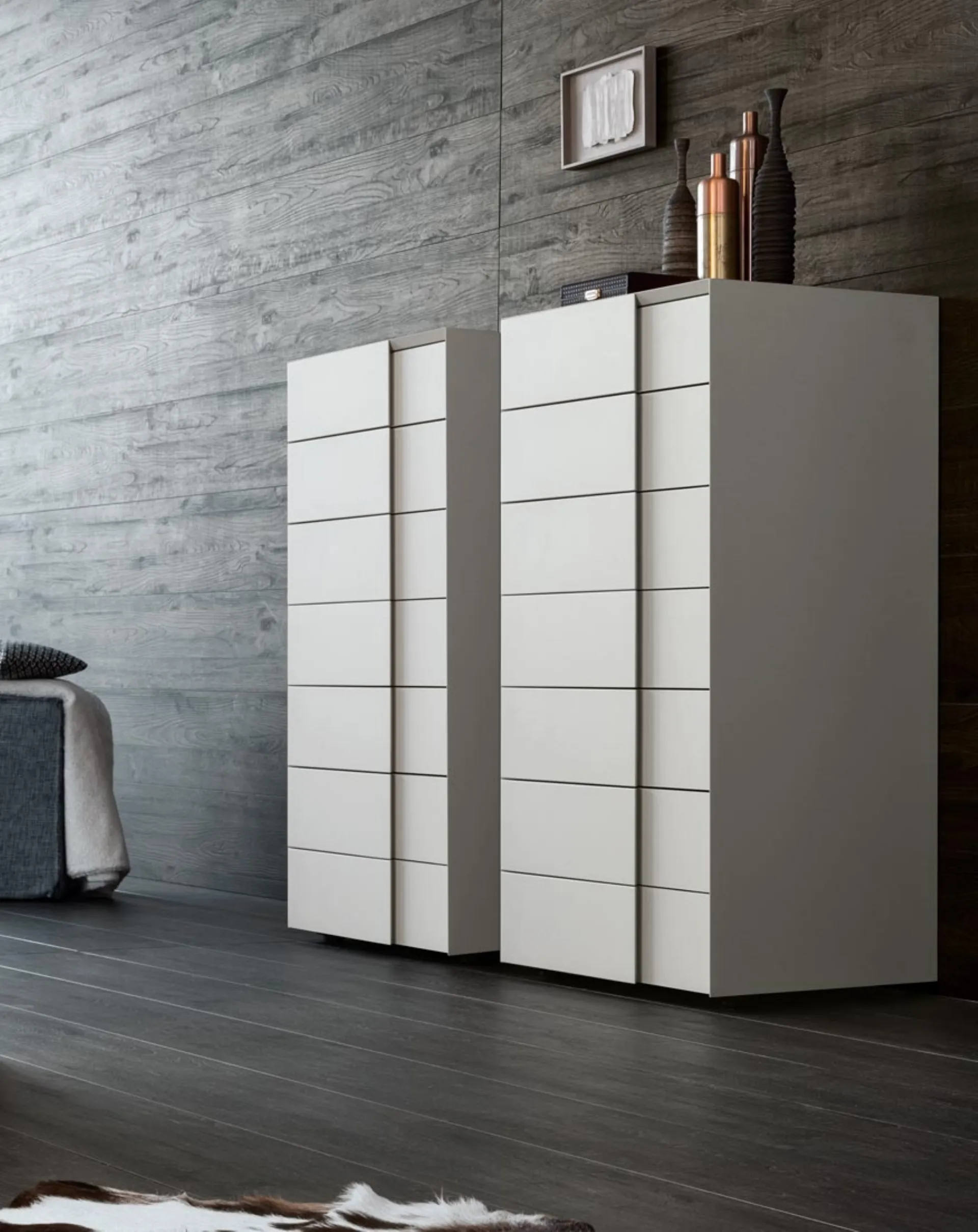 I Comodini, comò e gruppi notte possono essere coordinati al letto e all'armadio oppure possono essere in netto e voluto contrasto con essi: la scelta si baserà sulle reali possibilità di spazio e sulla ricerca di un armonioso effeto finale. In negozio ti sta aspettando un ricco catalogo di mobili e oggetti accessori moderni del noto e rinomato brand, leader nella realizzazione di Arredamento Casa per la camera da letto. Il Settimanale Twist di Giellesse è una tra le più belle soluzioni capaci di aggiungere un tocco di stile in più alla zona notte, utilizzando materiali di pregio.