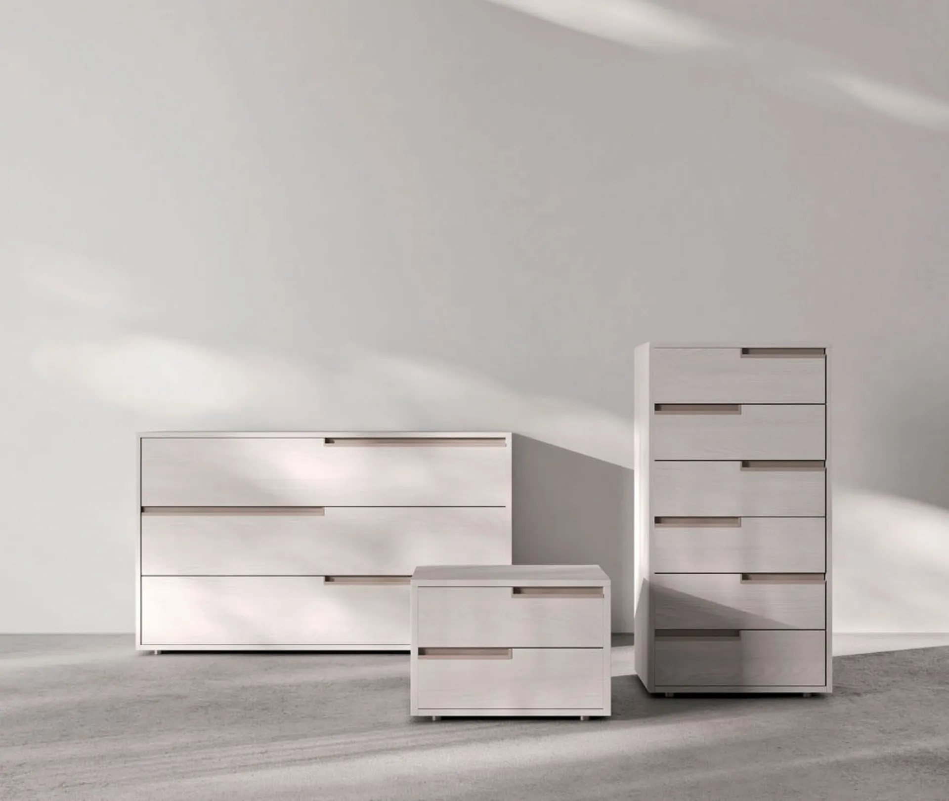 Vuoi allestire la camera da letto con Comodini e cassettiere di Orme? Ti presentiamo il modello Gruppo Notte Amalia in melaminico per spazi moderni.