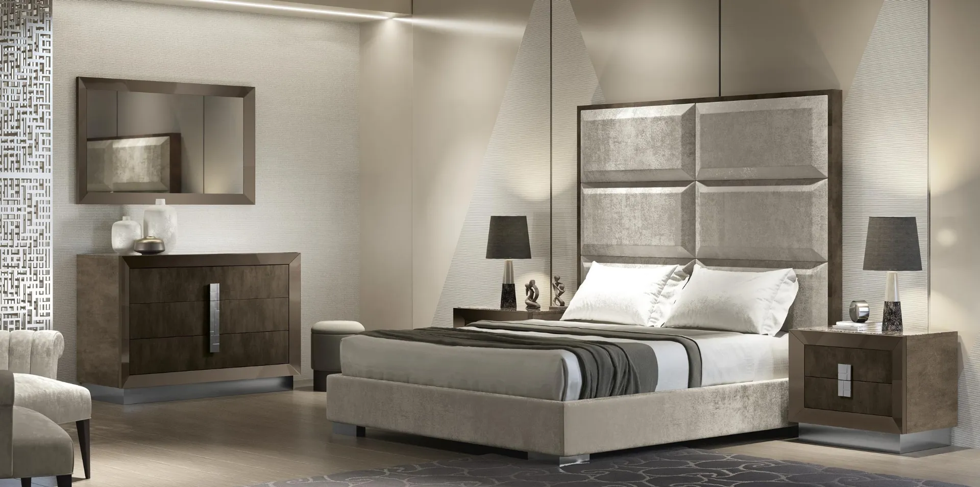 Una ricca gamma di mobili con cassetti Adriatica: i comodini design in materico, come Gruppo Notte Astra decorativo, sono tra le proposte più originali.