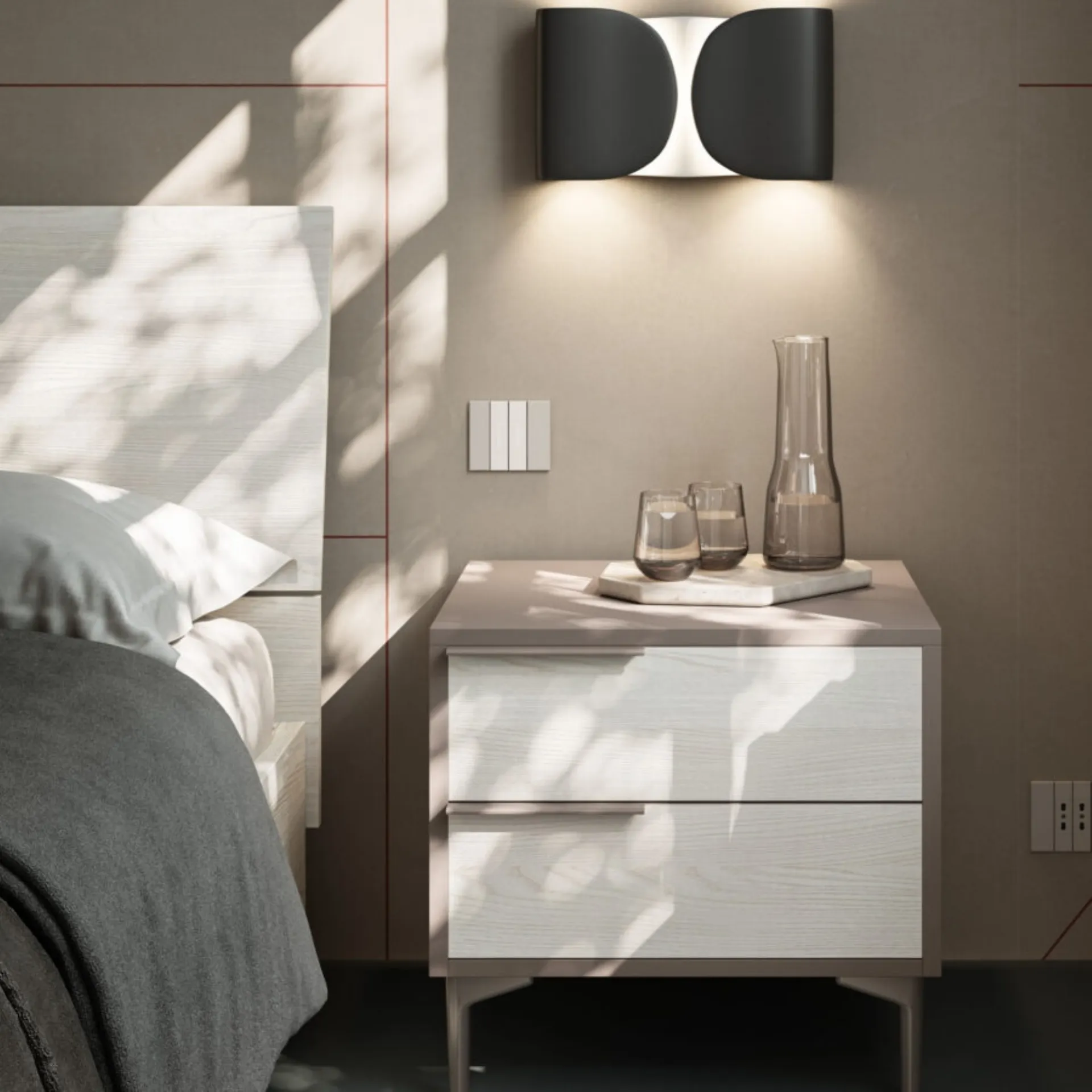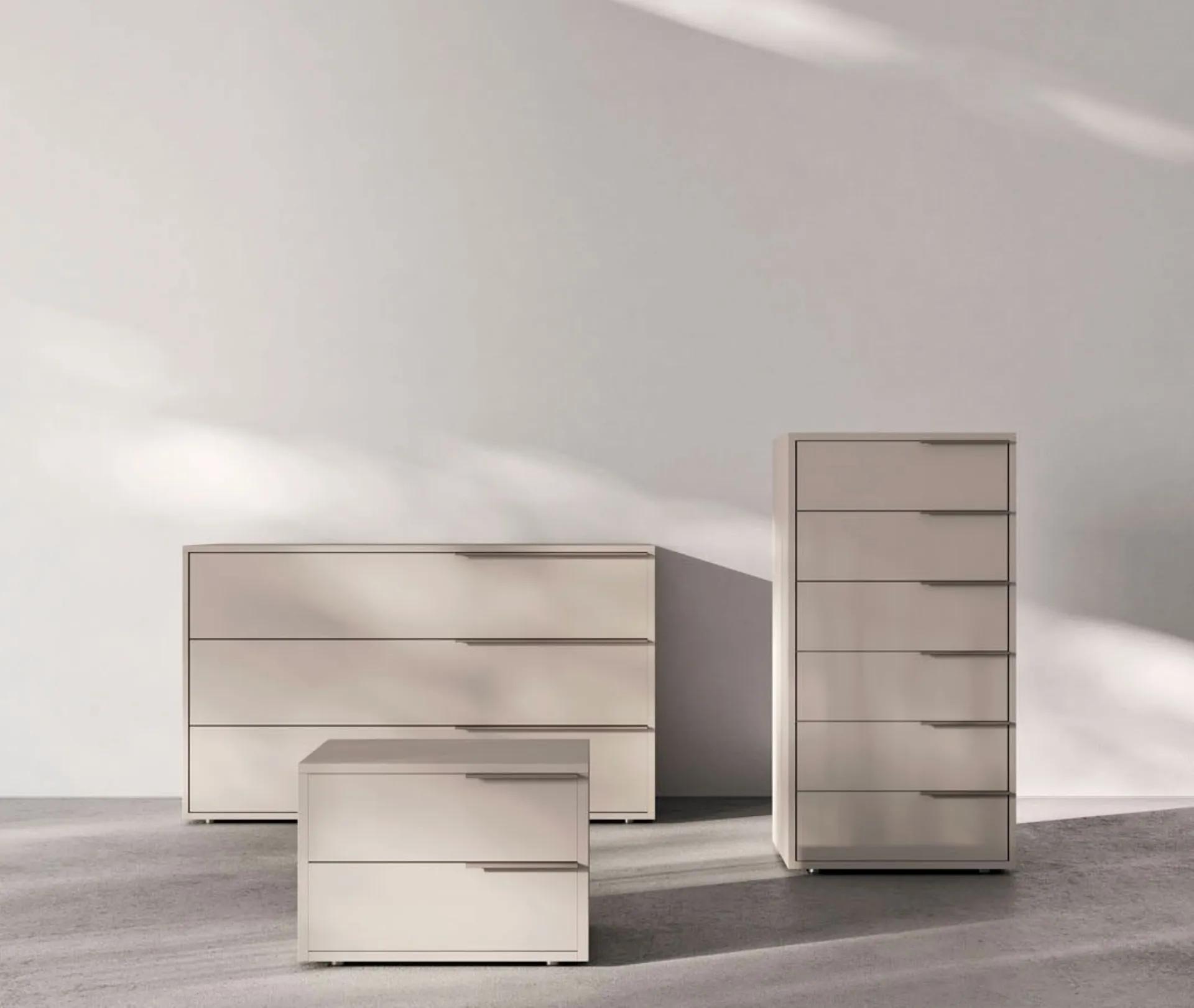 Vuoi progettare la camera da letto con Comodini e mobili con cassetti di Orme? Eccoti il modello Gruppo Notte Fasto in melaminico per spazi moderni.