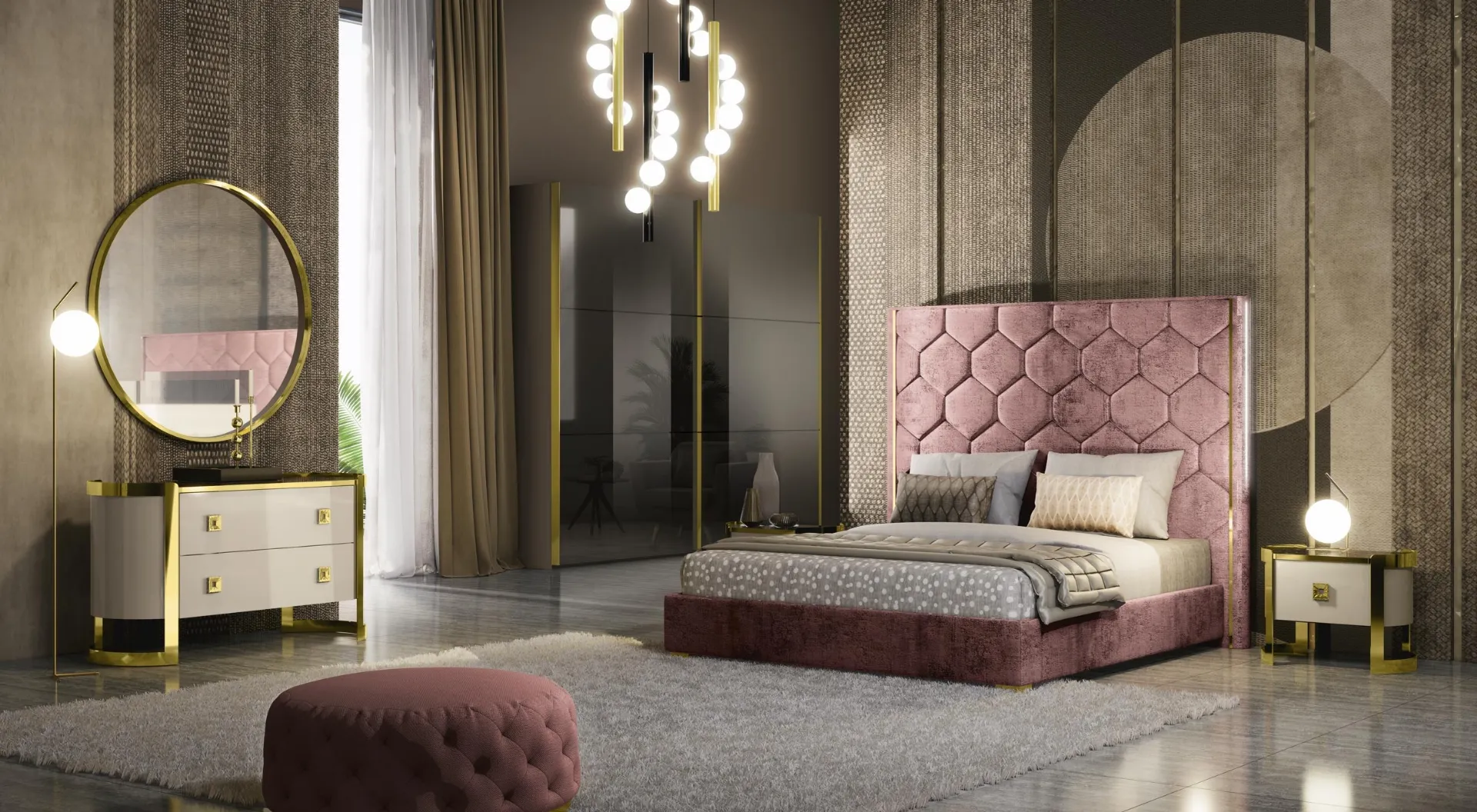 Vuoi allestire la zona notte con Comodini e mobili con cassetti di Adriatica? Eccoti il modello Gruppo Notte Kursaal in laccato lucido per spazi design.