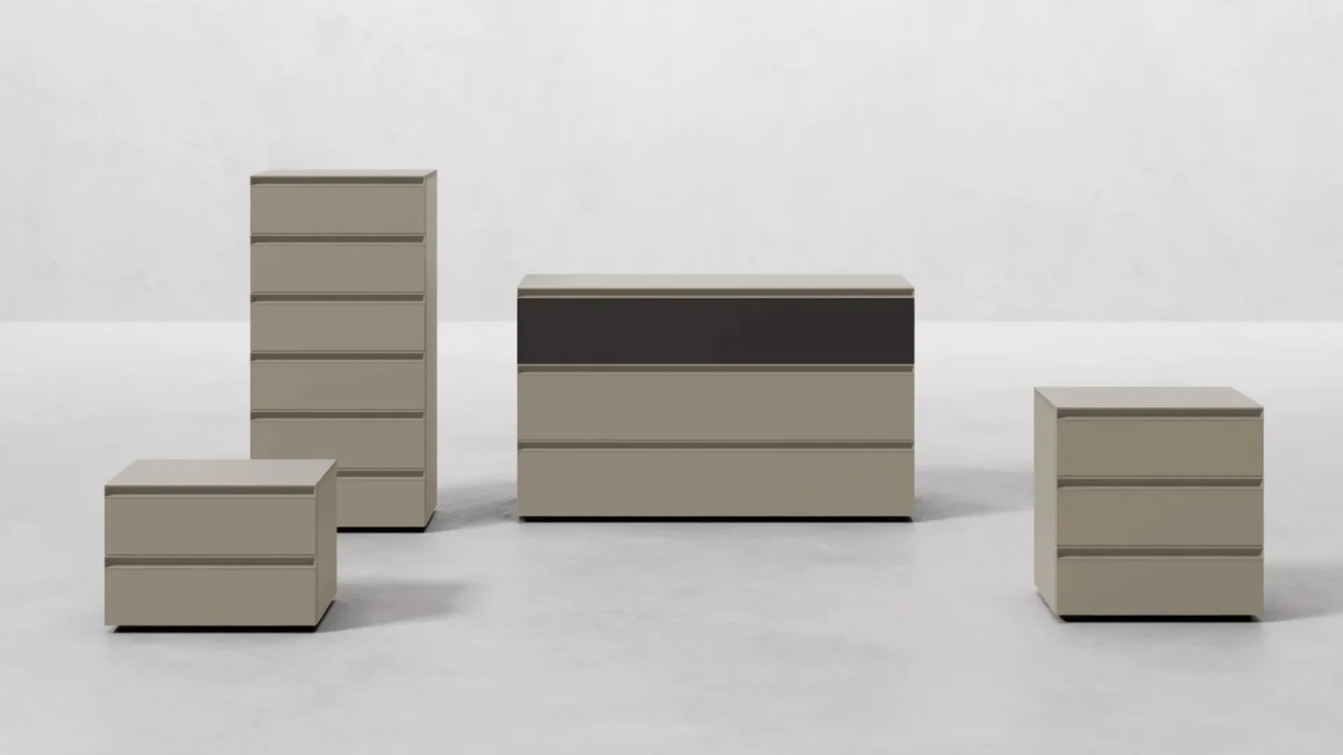 Una ricca gamma di mobili con cassetti Orme: i comodini moderni in laccato opaco, come Gruppo Notte Neck, sono tra le proposte più esclusive.