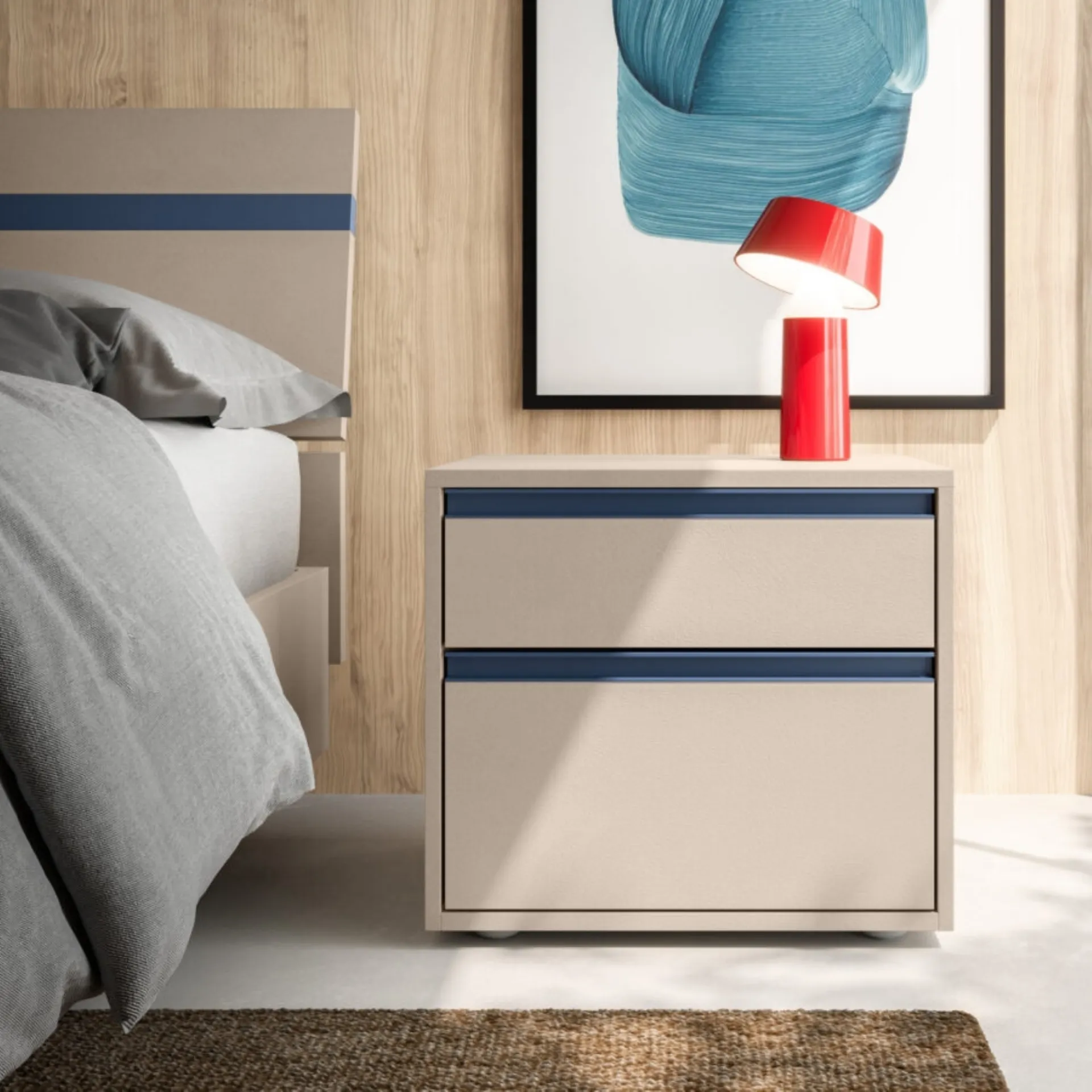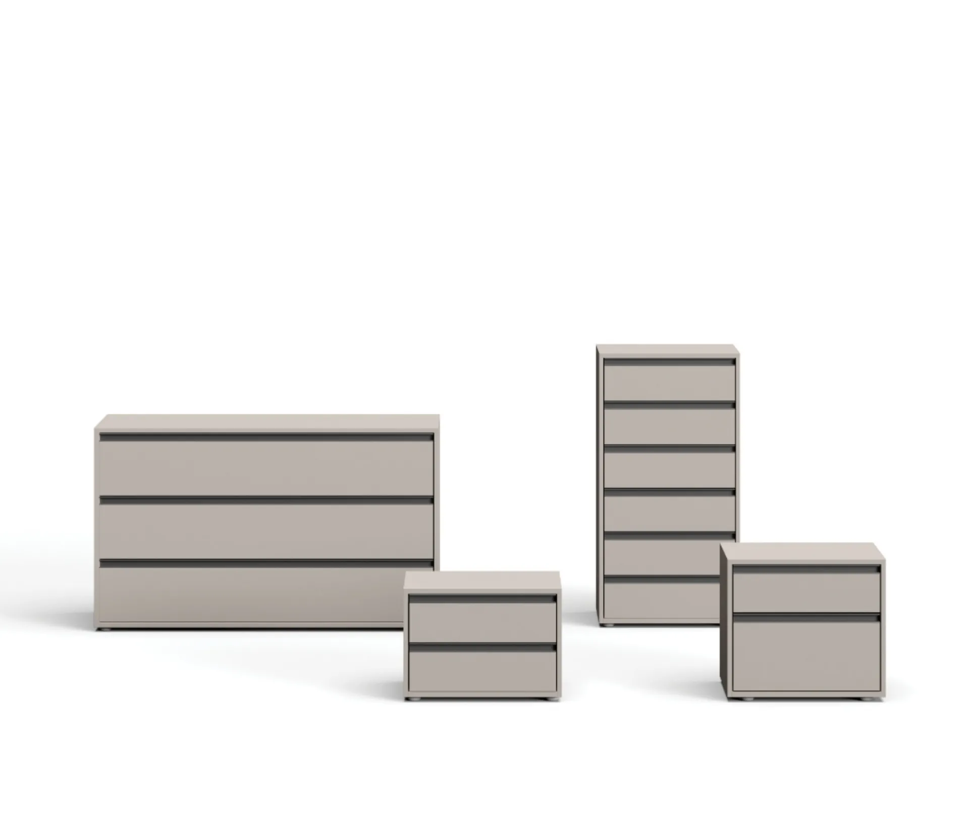 Vuoi arredare la camera da letto con Comodini e cassettiere di Orme? Ecco qui il modello Gruppo Notte Tratto in melaminico per spazi moderni.