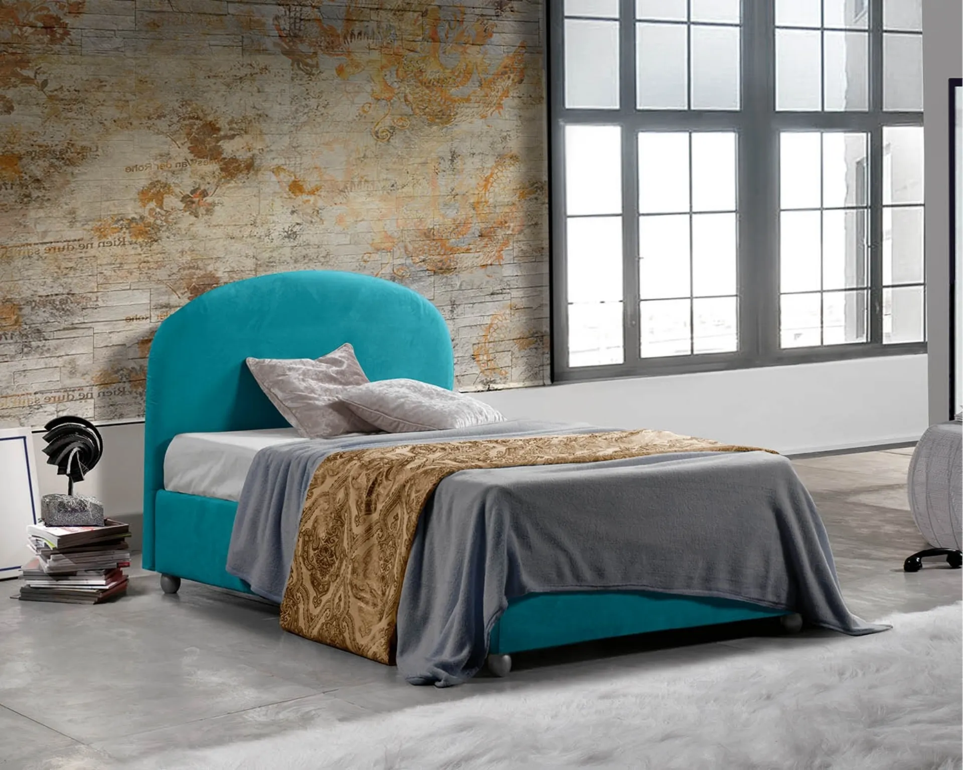 Se cerchi letti singoli imbottiti, ti presentiamo il modello Andromeda in tessuto per completare la stanza dei più piccoli.