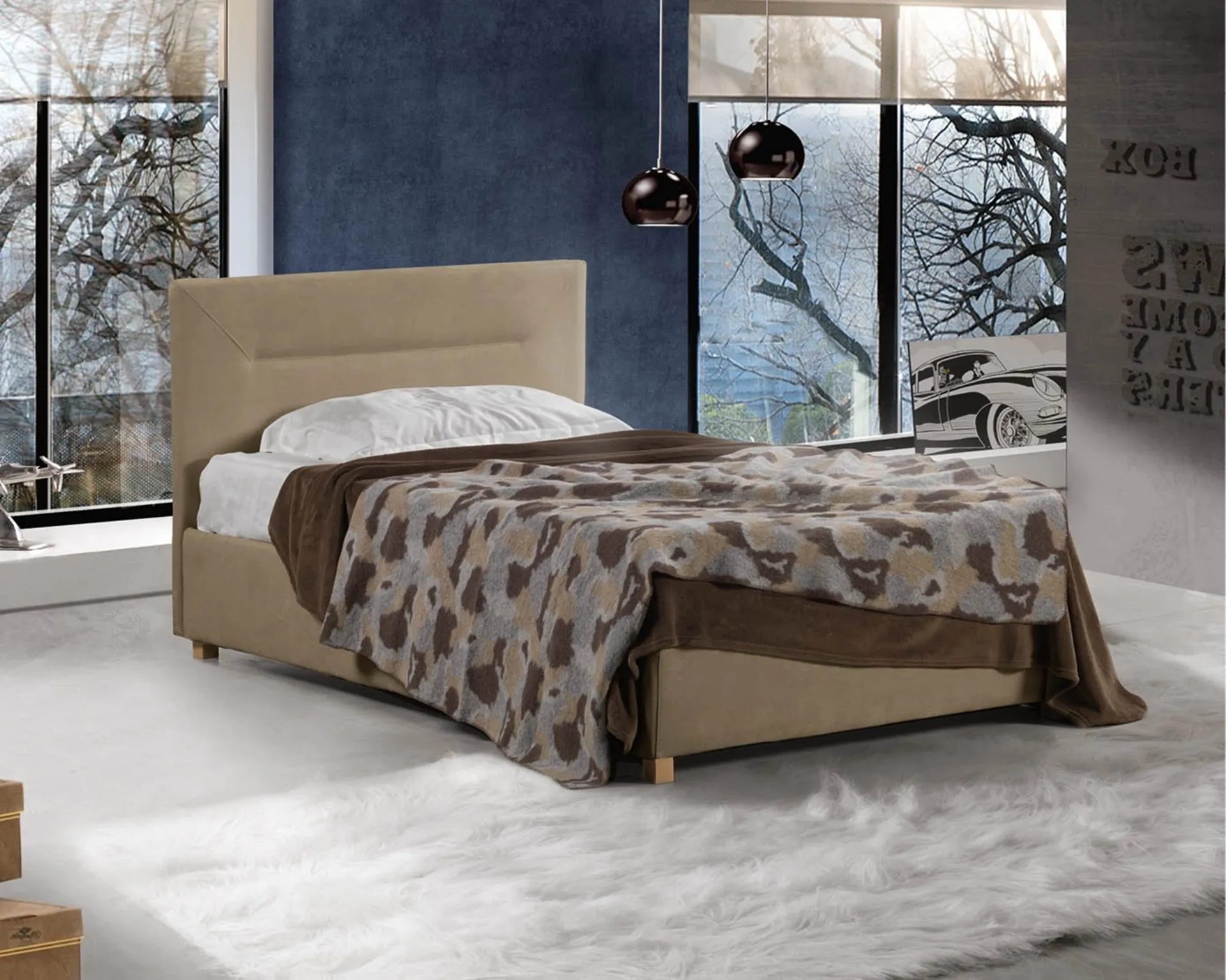 Se sei alla ricerca di letti singoli imbottiti, eccoti il modello Centauro in tessuto per completare la camera dei più piccoli.