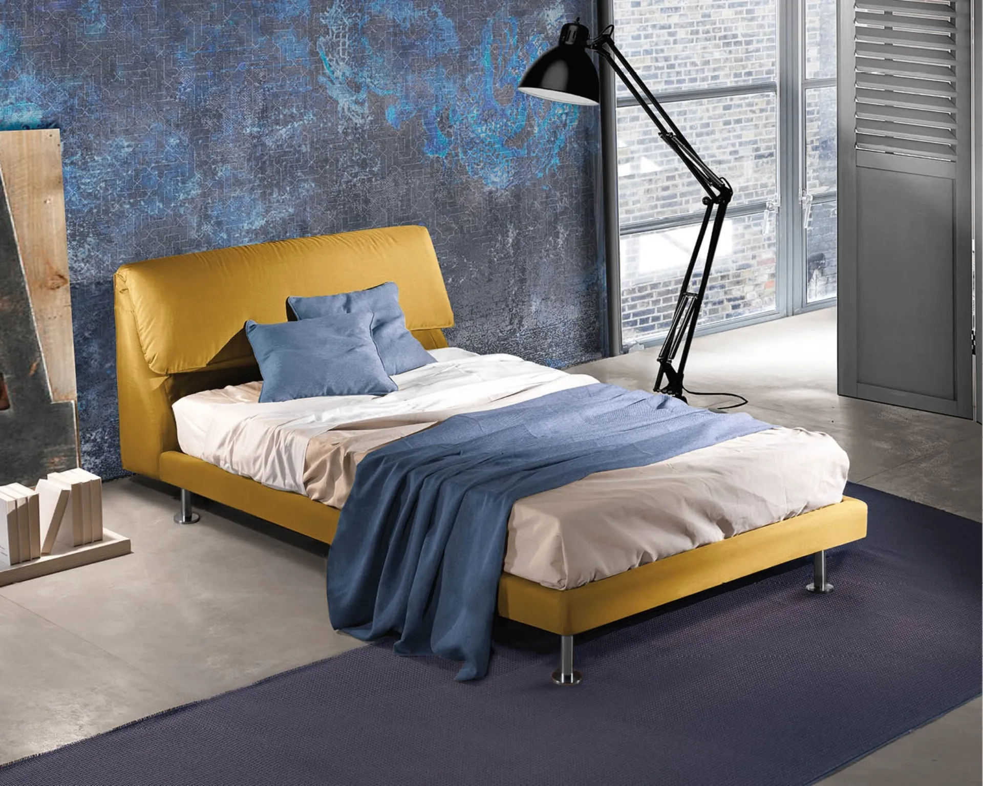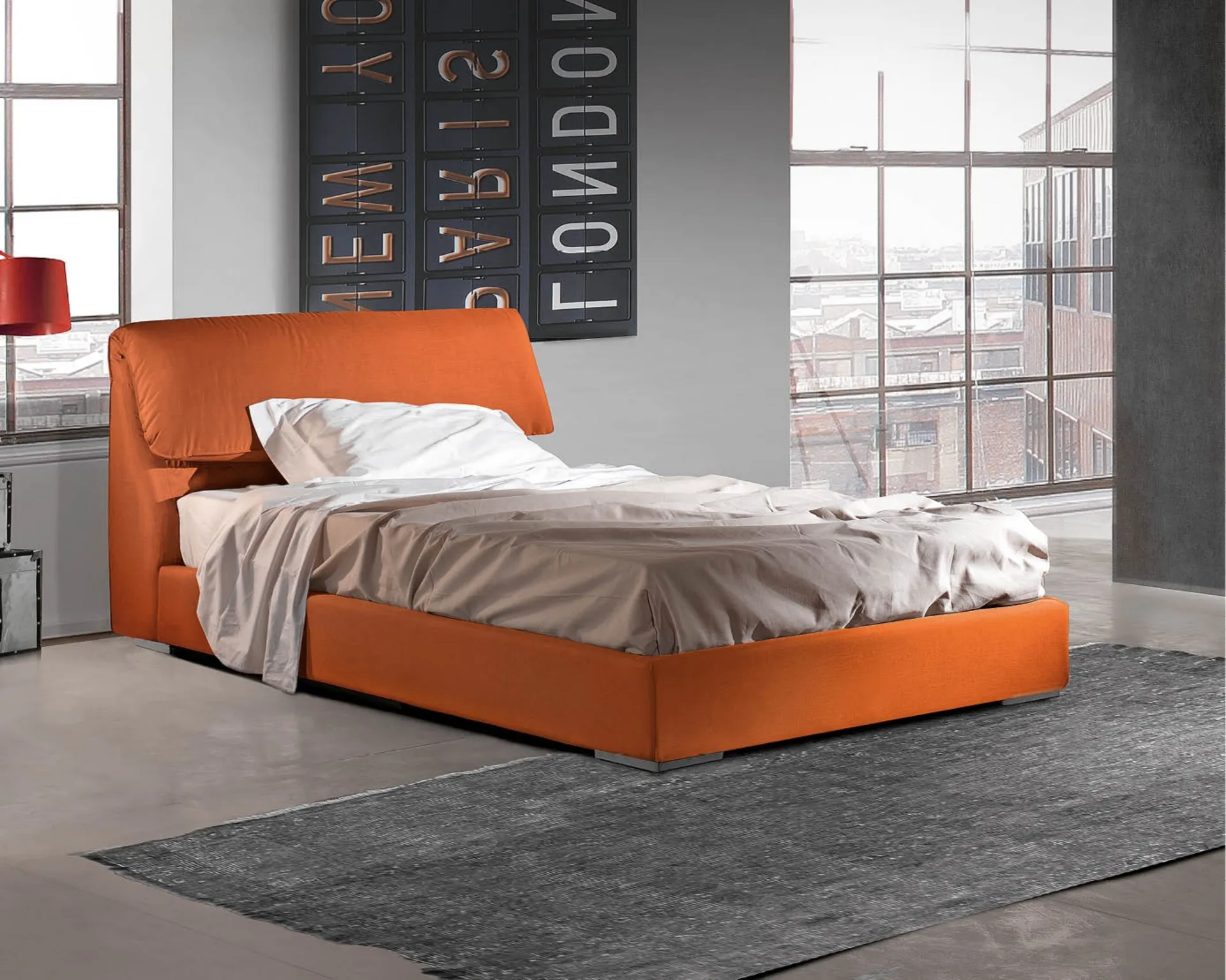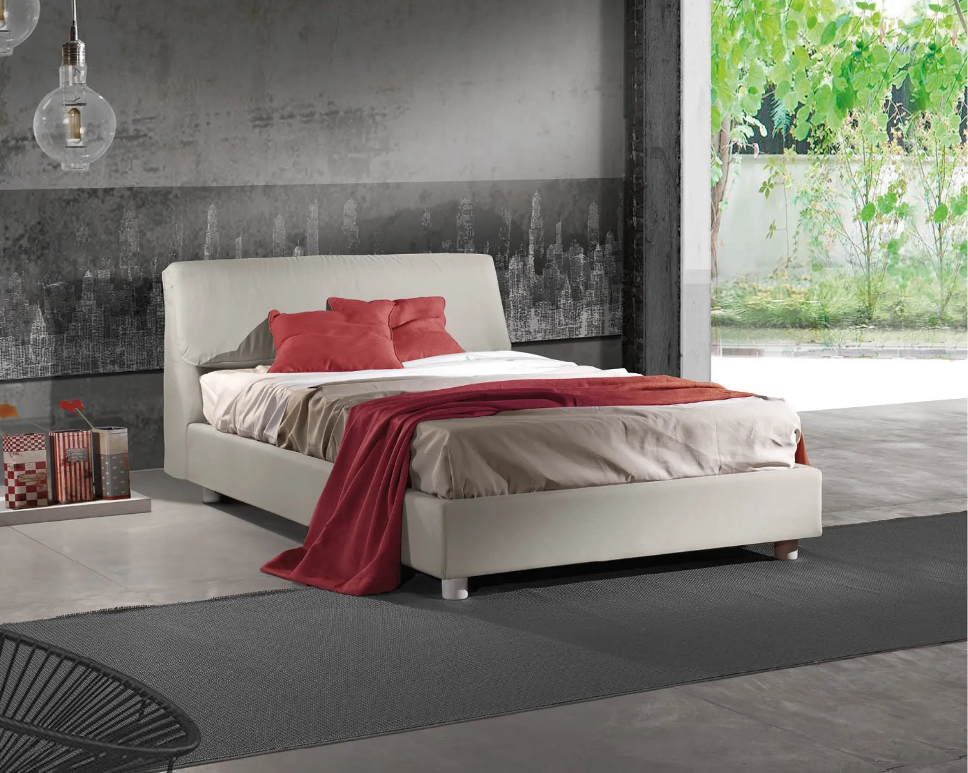 Il letto singolo Pegaso in tessuto nella fotografia, tra i modelli imbottiti moderni di Lettissimi , è pensato per garantire il relax totale.