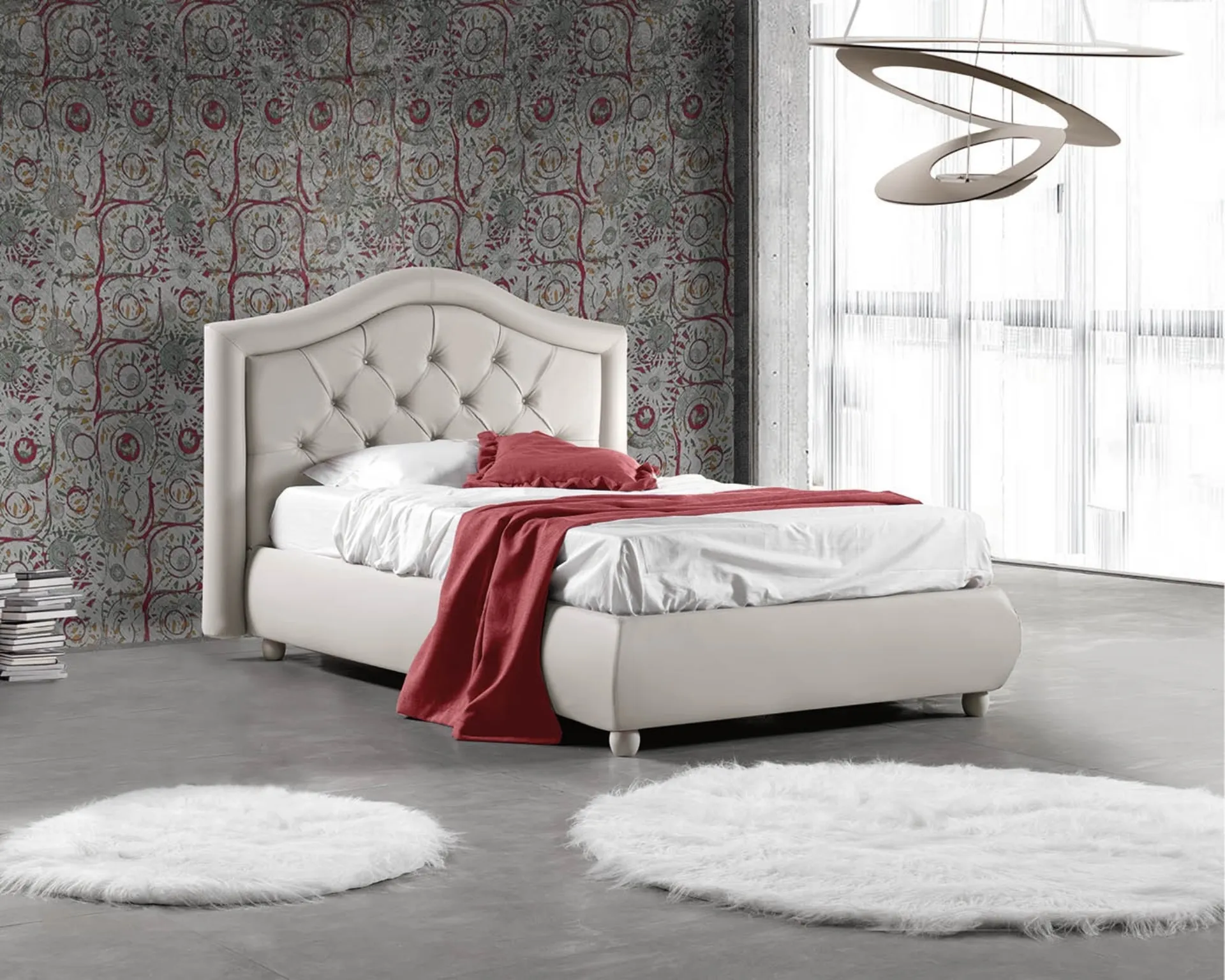 Il letto singolo Sogno Capitonné in pelle nell'immagine, tra i modelli imbottiti classici di Lettissimi , è pensato per garantire il sonno più profondo.