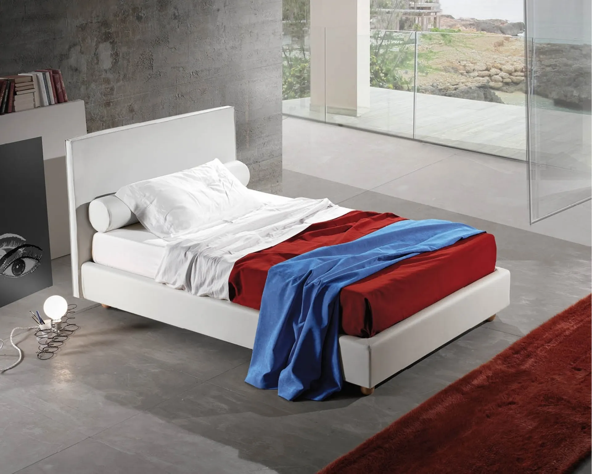 Il letto singolo Vela Liscio in tessuto nella fotografia, tra i modelli imbottiti moderni di Lettissimi , è ideale per garantire il relax totale.