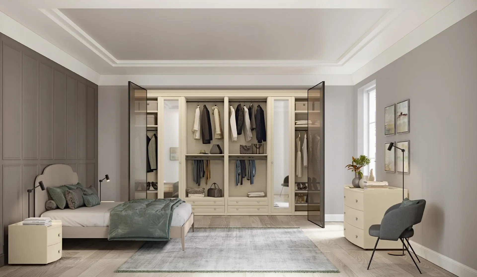 Se vuoi letti matrimoniali con testiera, eccoti il modello Arcadia Aida in melaminico per impreziosire la zona notte.