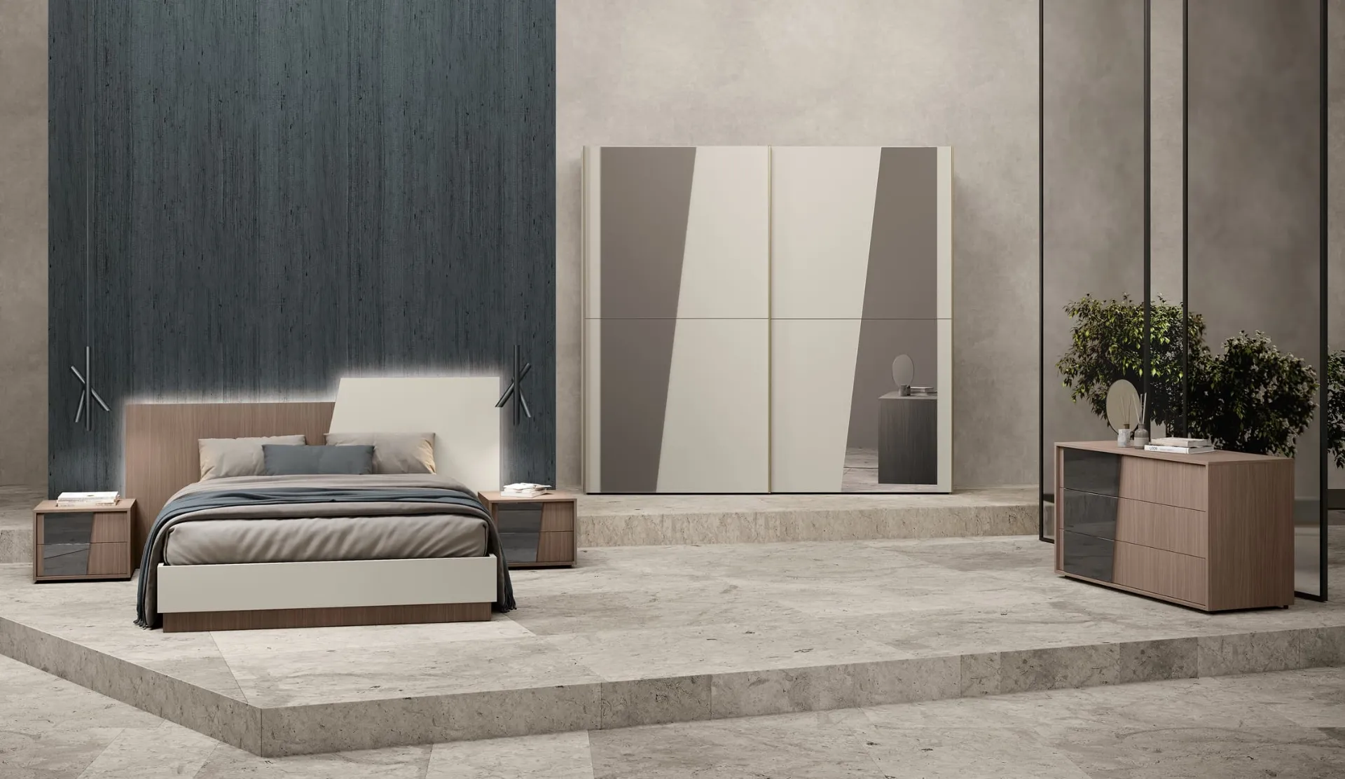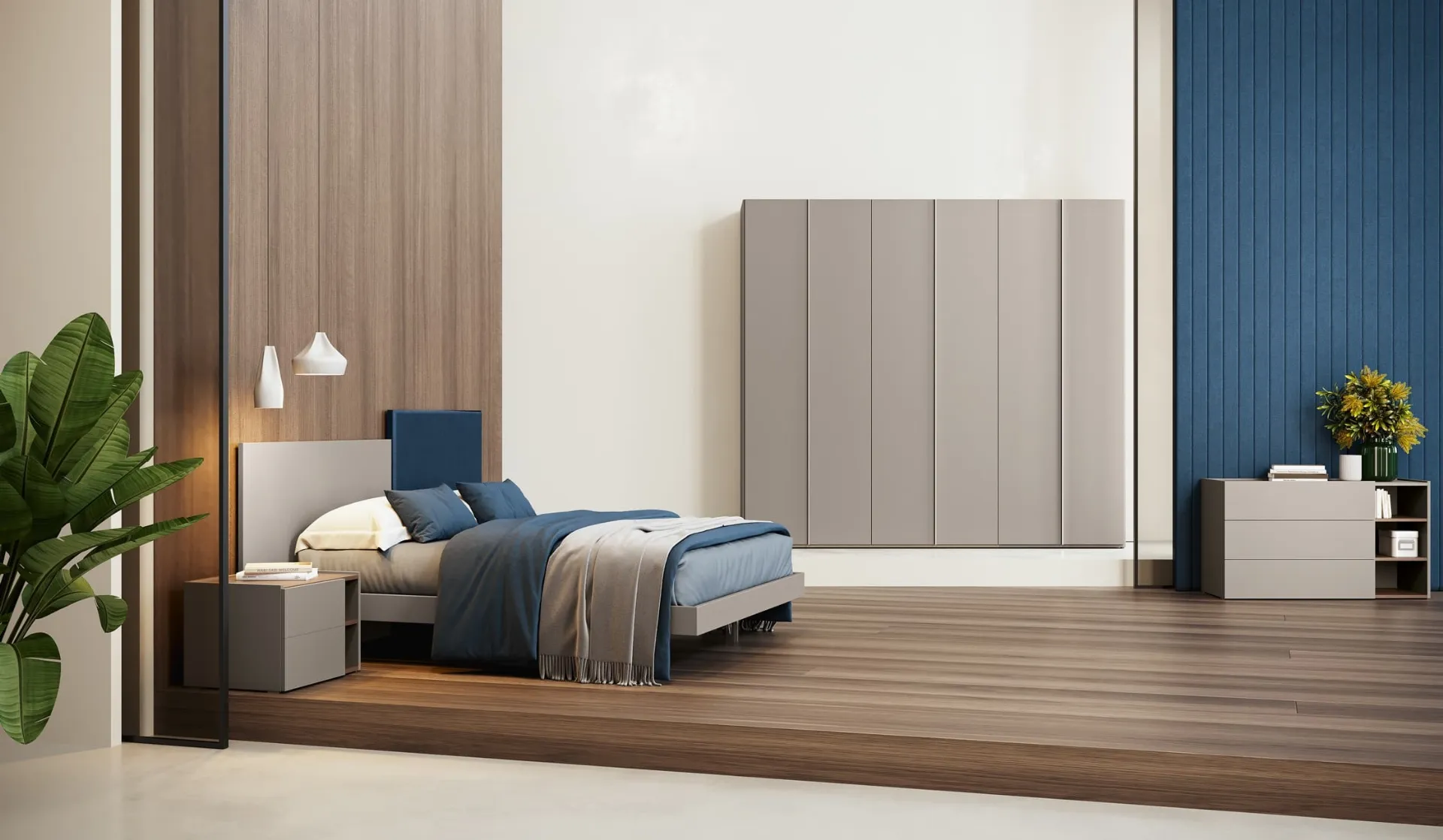 Il letto Contempo in melaminico, tra i modelli con testiera matrimoniali moderni di Adriatica, è ideale per garantirti il sonno più profondo.