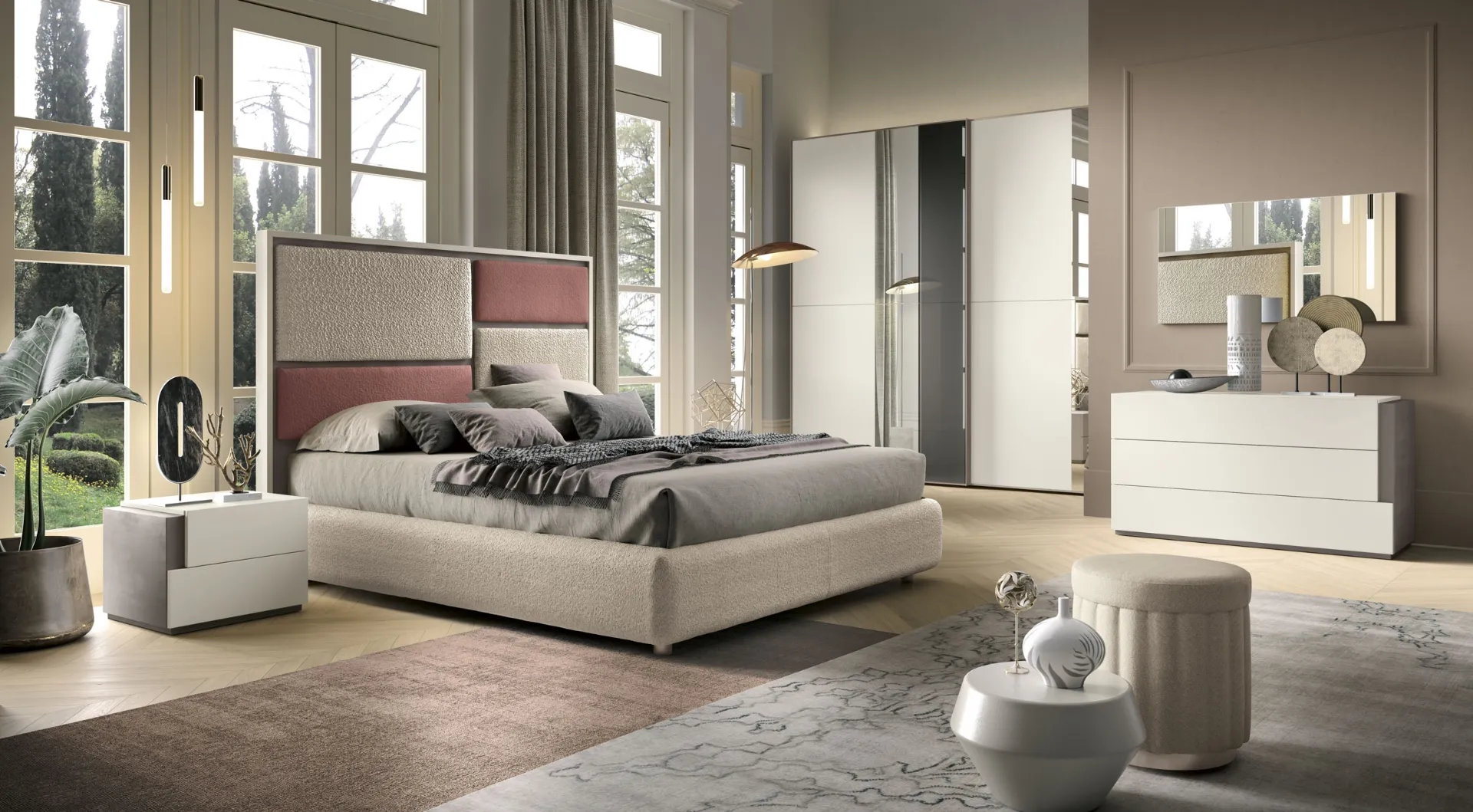 Il letto Eolo in tessuto, tra i modelli imbottiti matrimoniali design di Adriatica, è perfetto per assicurarti il relax totale.
