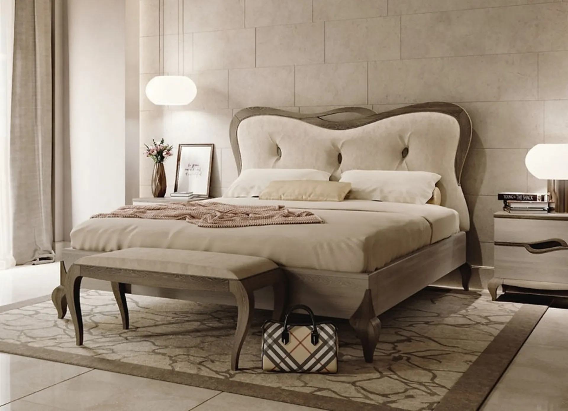Vuoi ridefinire la zona notte? Ecco qui il letto in tessuto Touchet di Fasolin per spazi classici.