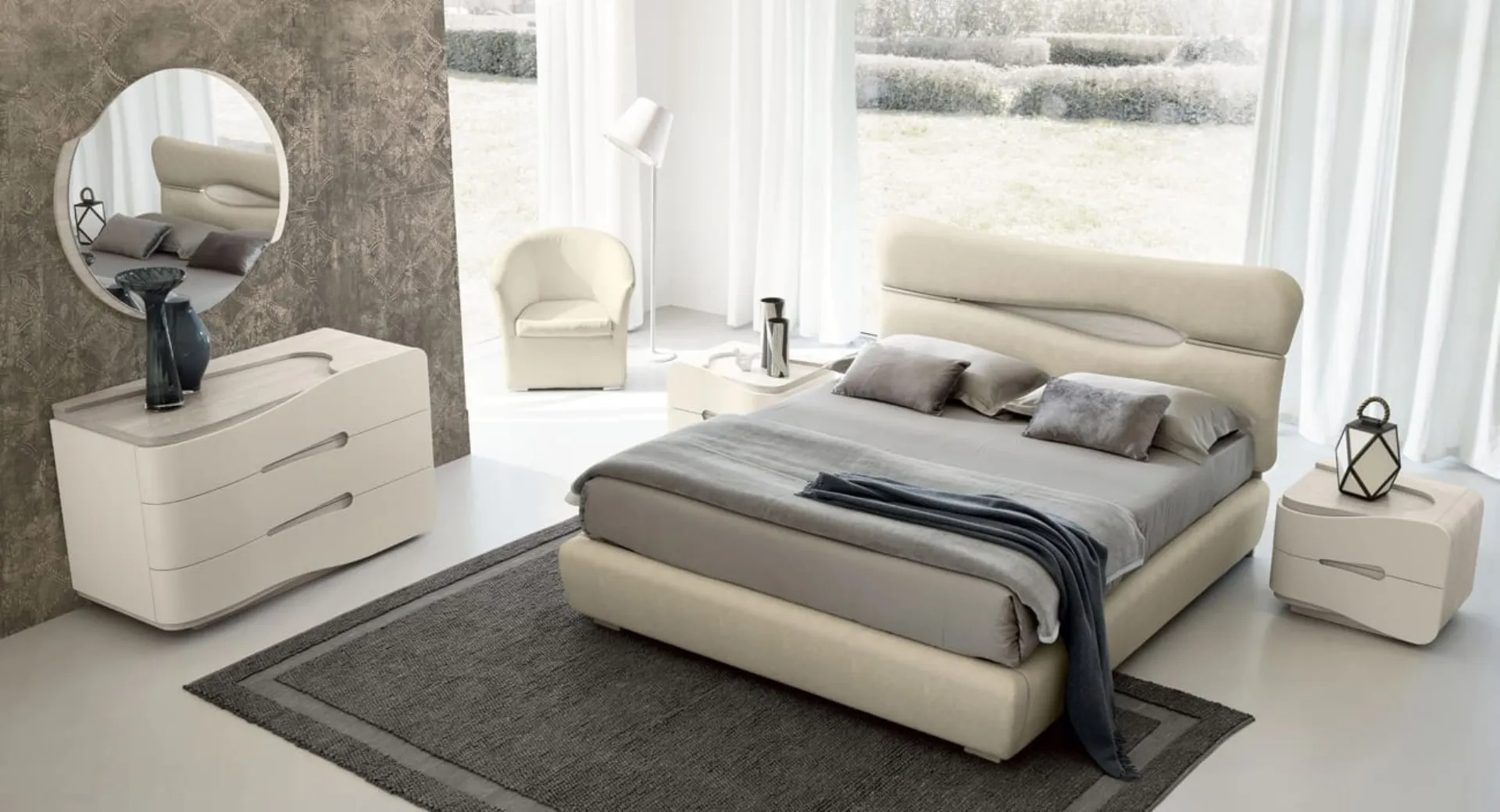Se desideri letti matrimoniali imbottiti, ecco qui il modello Fly in ecopelle per impreziosire la zona notte.