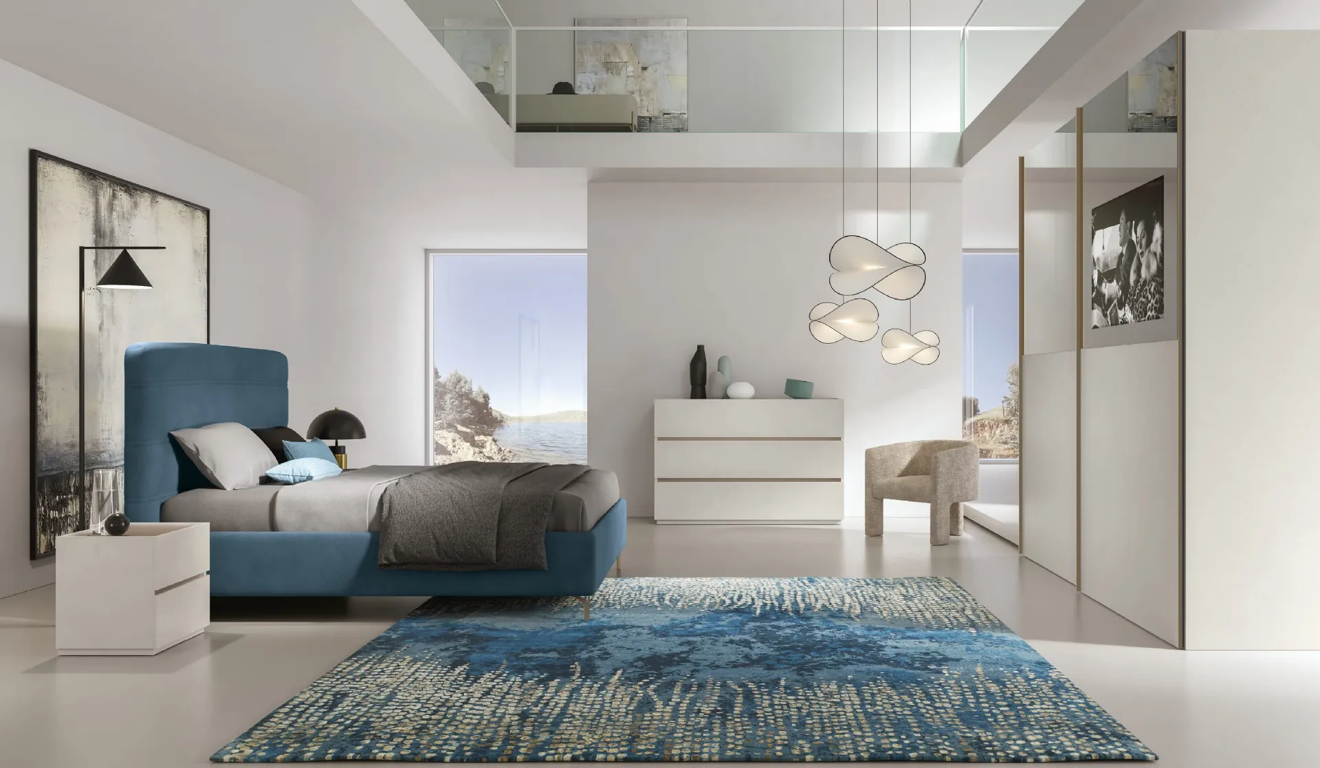 Vuoi progettare la camera da letto? Eccoti il letto in tessuto Ipsilon Jupiter di Adriatica per spazi moderni.