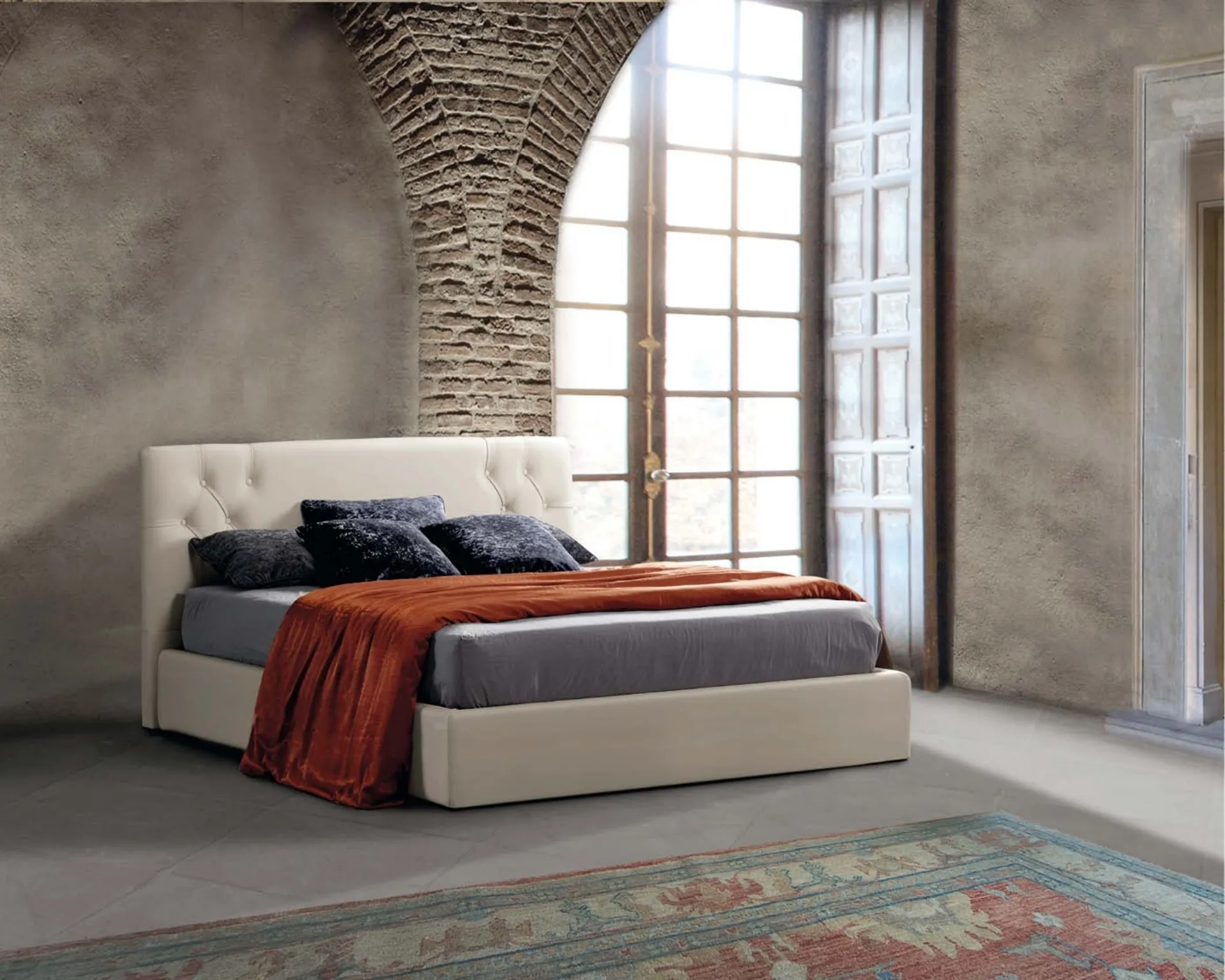 Il letto Athena in pelle, tra i modelli imbottiti matrimoniali classici di Lettissimi, è perfetto per garantirti il sonno più profondo.