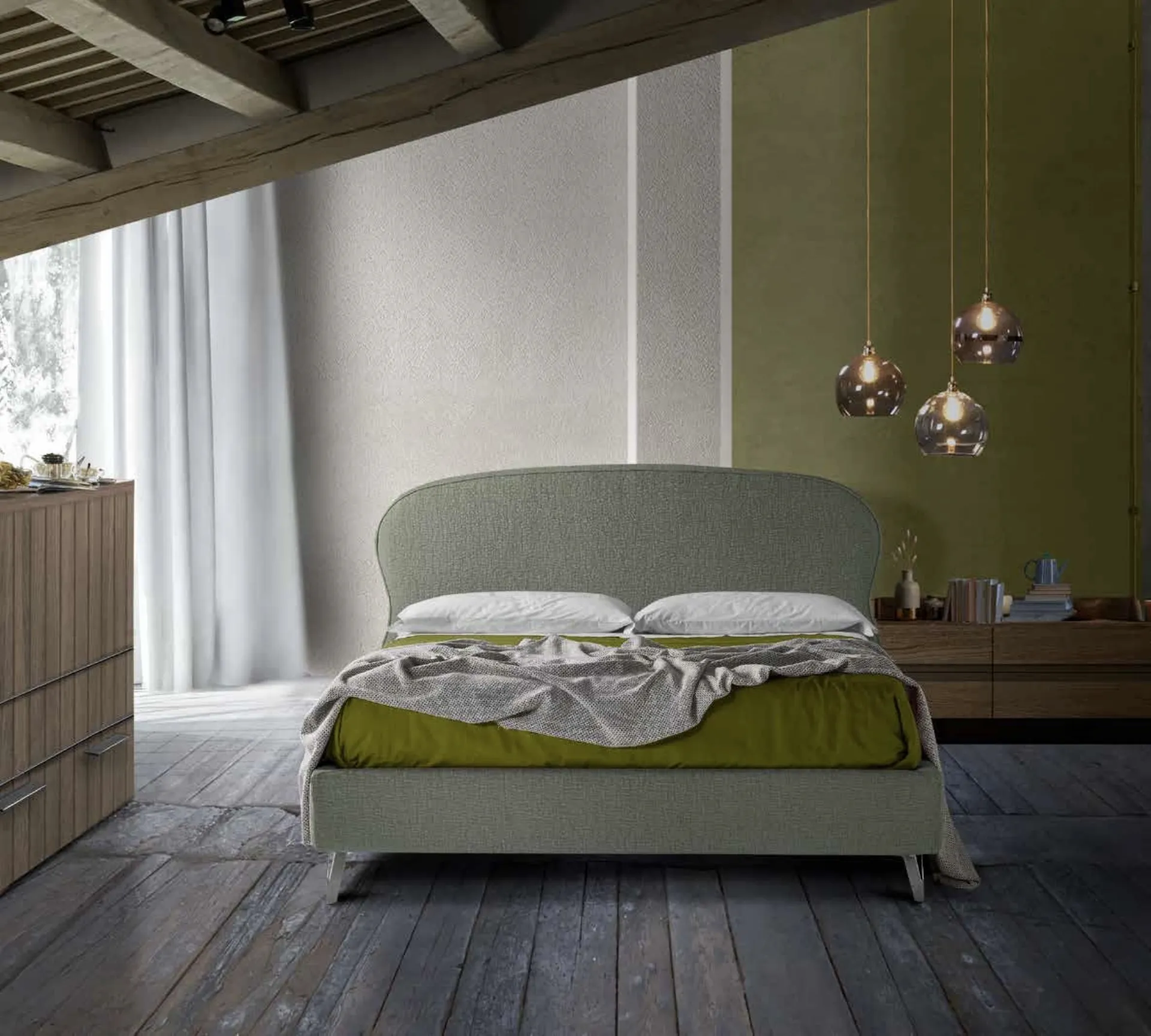 Vuoi ridefinire la zona notte? Eccoti il letto in tessuto Sospiro di Lettissimi per spazi moderni.