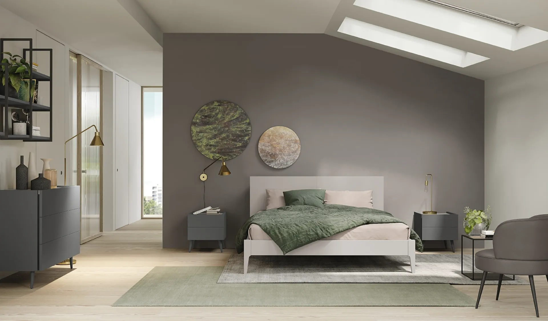 Se cerchi letti matrimoniali con testiera, ecco qui il modello Mushy in melaminico per completare la zona notte.