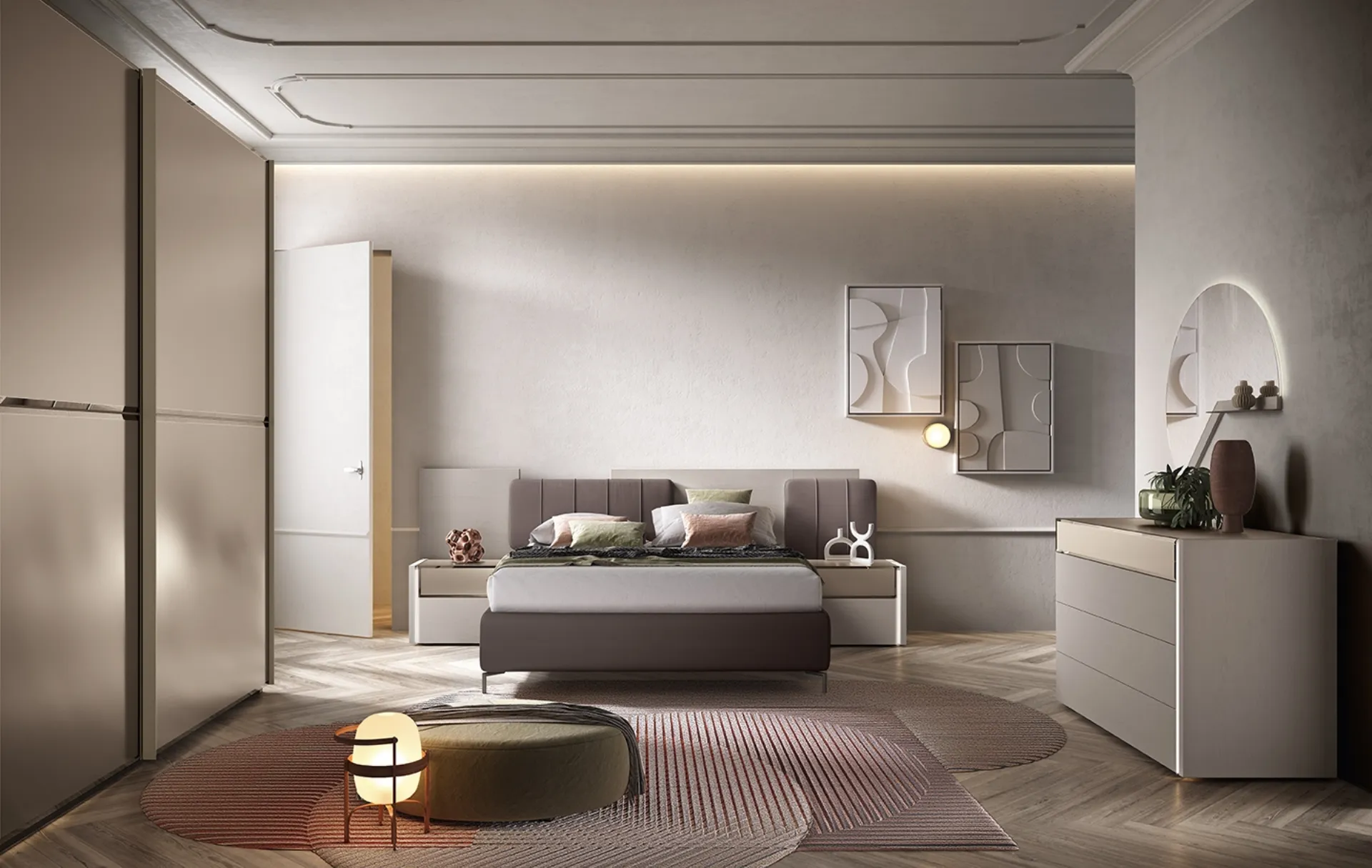 Vuoi progettare la camera da letto? Ti presentiamo il letto in tessuto Notte di Stelle 01A di Corso 11 per spazi moderni.