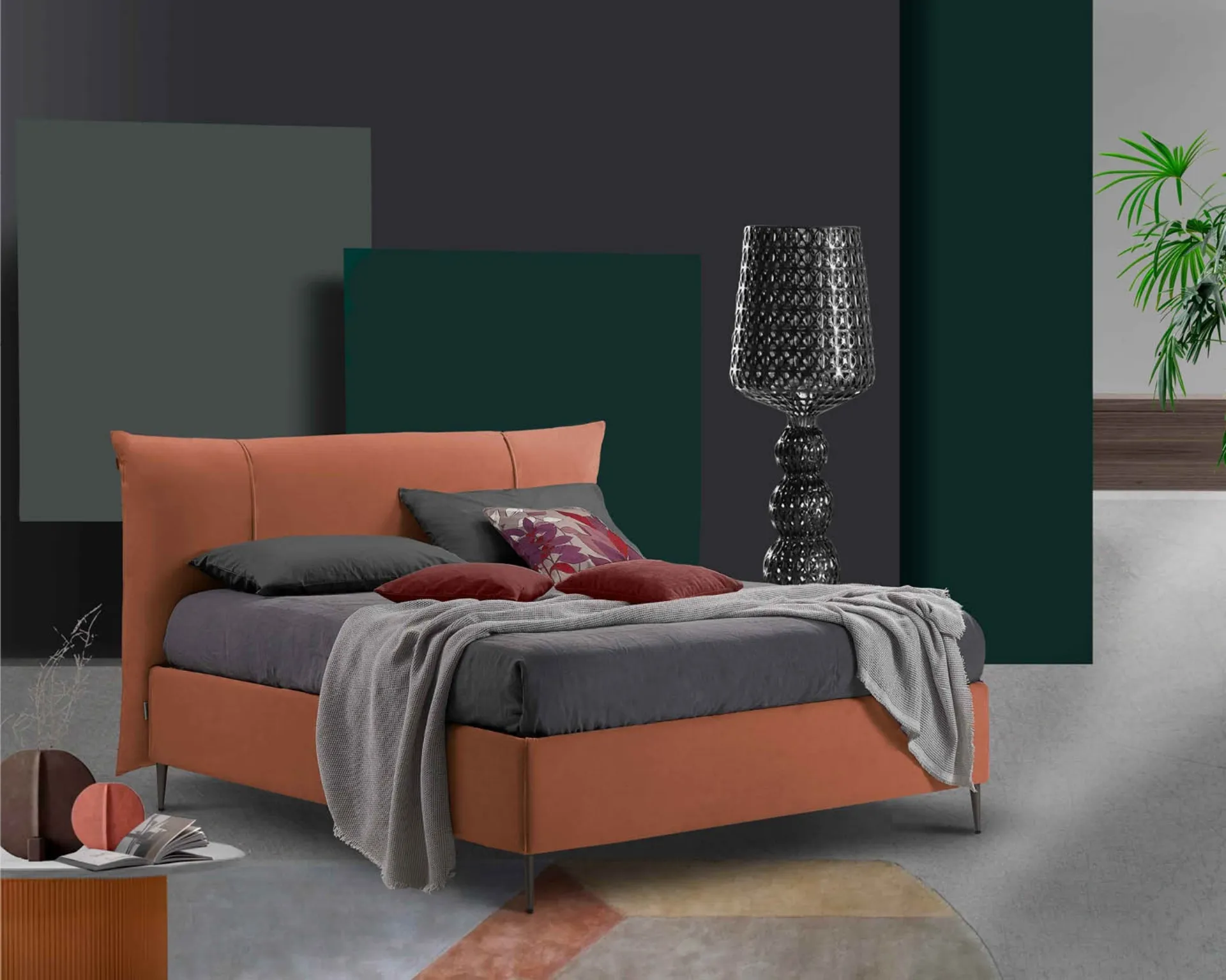 Scegli tonalità e finiture e realizza il tuo concept d’arredo nella camera da letto, progettandola proprio come l'avevi immaginata. Durante l'acquisto della giusta tipologia di letto, valuta con cura le sue misure, i materiali, la forma e il suo stile rispetto ai restanti pezzi d'arredo. Se desideri una soluzione in tessuto, il modello presente in foto è contraddistinto da materiali durevoli e forme decise, che invitano a passare un sonno completo e rigenerante. Il Letto Penelope di Lettissimi crea uno spazio familiare e confortevole in ogni camera da letto, assicurandoti il relax totale e uno stile unico.