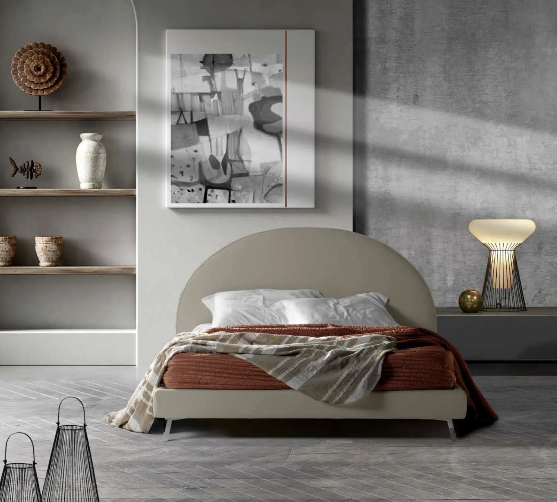 Il Letto con testiera arrotondata Rondò di Lettissimi è uno dei prodotti più inediti del marchio, sinonimo di durata negli anni, qualità delle finiture e uno stile unico. Per ultimare al meglio l'arredo della tua zona del riposo è essenziale valutare gli accostamenti del letto con armadi e comodini, elementi accessori e quant'altro: se vuoi arredi moderni, il modello nell'immagine fa per te. Contattaci e scopri di più sulla nostra collezione di Letti matrimoniali imbottiti: valorizza la tua camera da letto con le nostre soluzioni.