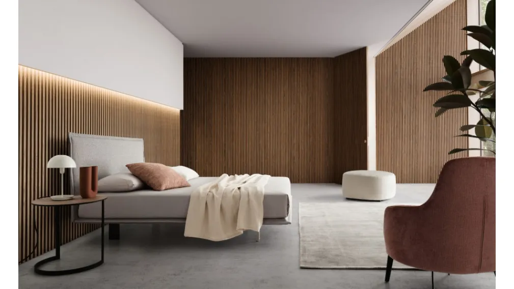 Il letto Vasco in tessuto, tra i modelli imbottiti matrimoniali moderni di Le Comfort, è ideale per garantirti il relax totale.