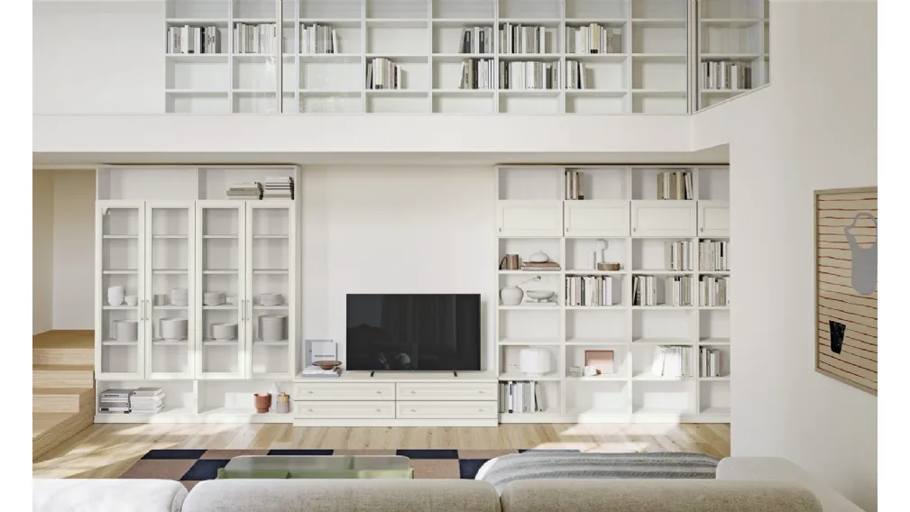 Clicca e scopri le Librerie componibili classiche! Il modello Arcadia L001 Colombini Casa saprà ultimare un soggiorno dinamico e operativo.