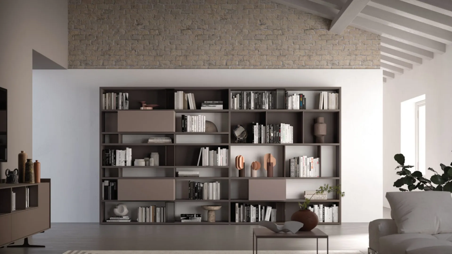Finiture di pregio e linee decise: scopri la libreria Logico Day 32 di Orme tra le più esclusive Librerie moderne a muro.