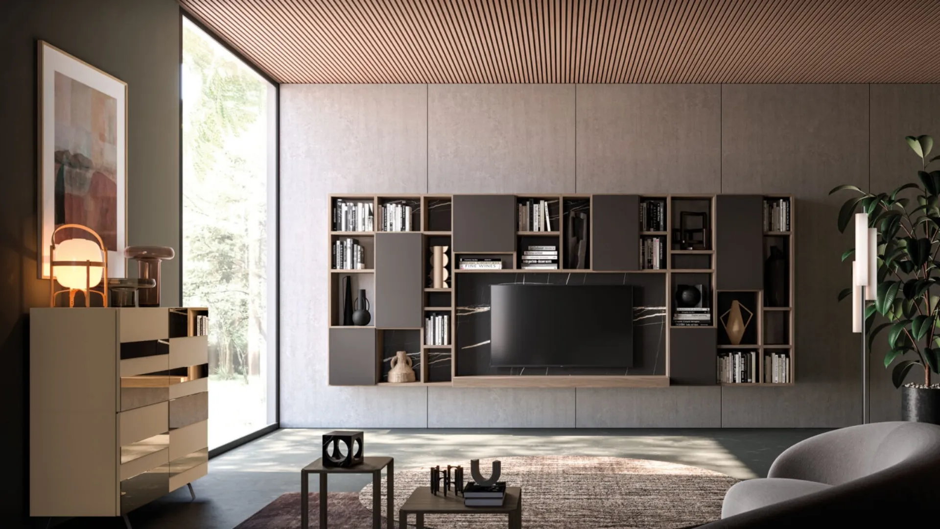 Vuoi riammodernare il soggiorno? Scopri di più sulle librerie moderne sospese e arreda i tuoi locali con il modello Logico Day 33 .