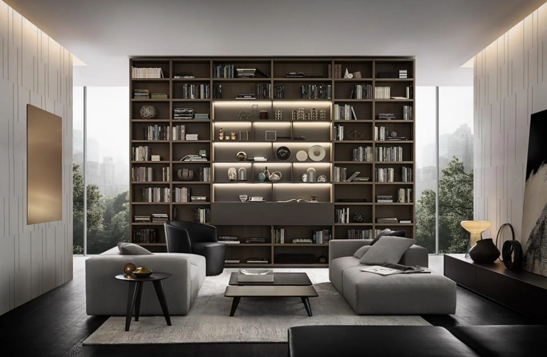 Finiture di pregio e forme decise: scopri la libreria Flexus composizione 02 di Giellesse tra le più belle Librerie design divisorie.