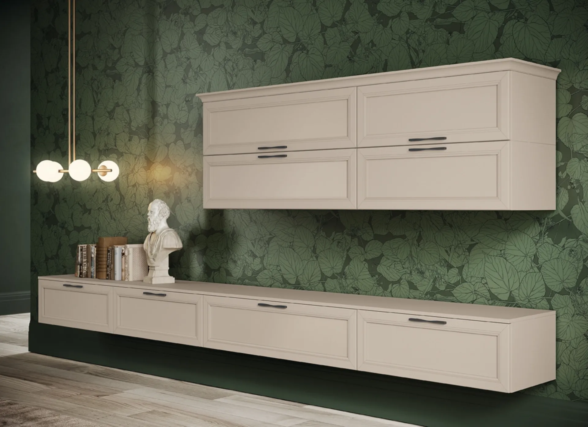 Se vuoi completare un living operativo e pratico dalle linee classiche, ti offriamo la parete attrezzata Arcadia AS005 Colombini Casa.