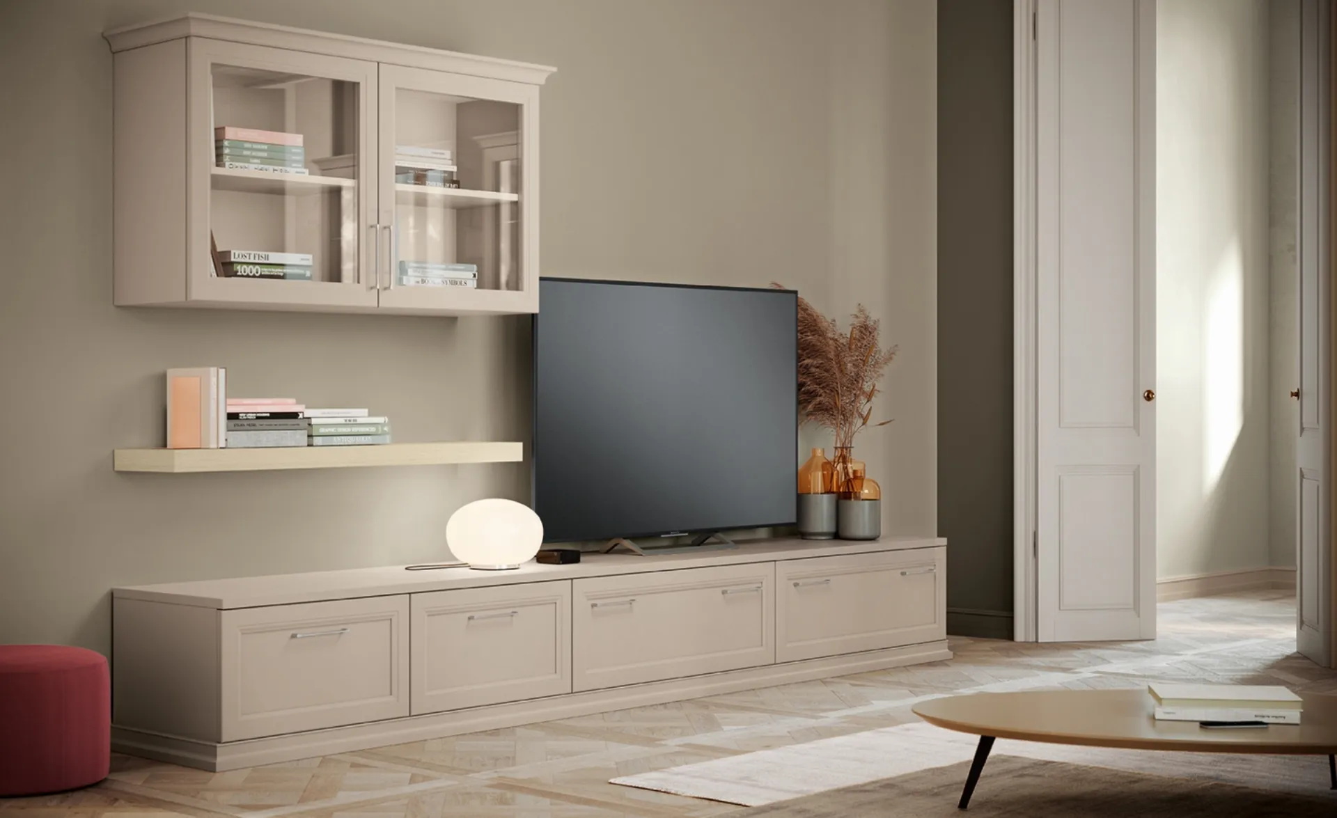 Vuoi progettare un soggiorno pratico e dinamico? Ecco a te la parete attrezzata Arcadia AS010 Colombini Casa dalle forme decise classiche.