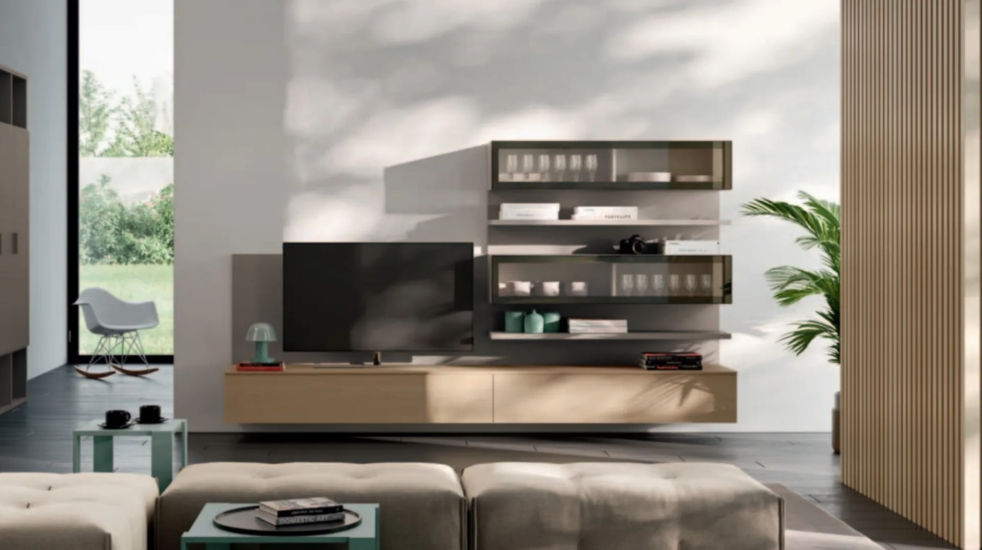 Se desideri ultimare un living pratico e operativo dalle linee moderne, ti offriamo la parete attrezzata Day 16 Orme.
