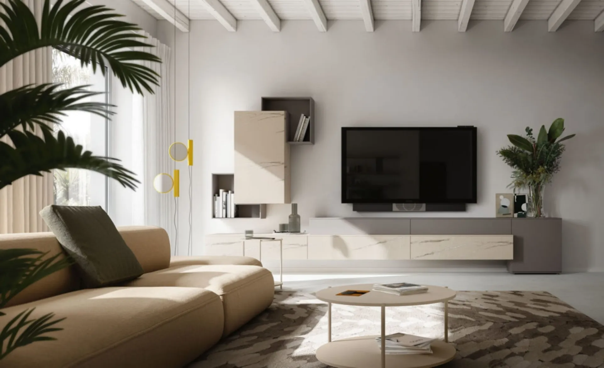 Se vuoi completare un soggiorno dinamico e operativo dalle linee moderne, ti presentiamo la parete attrezzata Day 33 Orme.