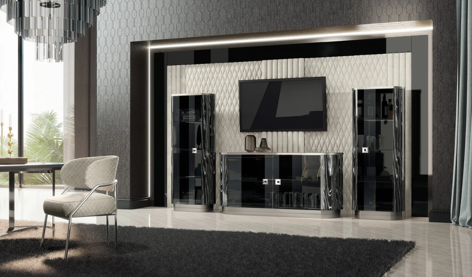 Vuoi arredare un soggiorno pratico e dinamico? Ti offriamo la parete attrezzata Duse Adriatica dalle forme decise moderne.