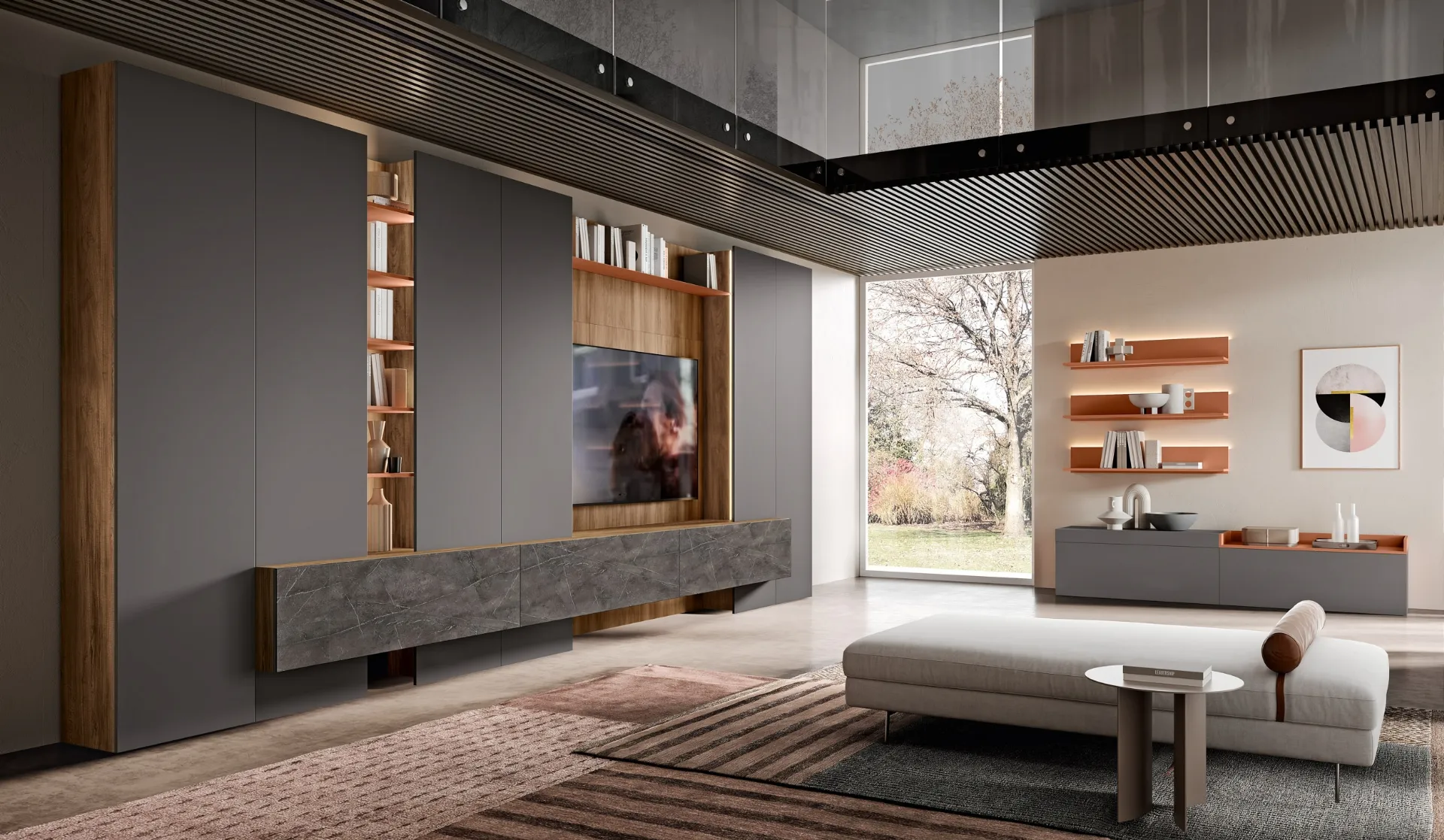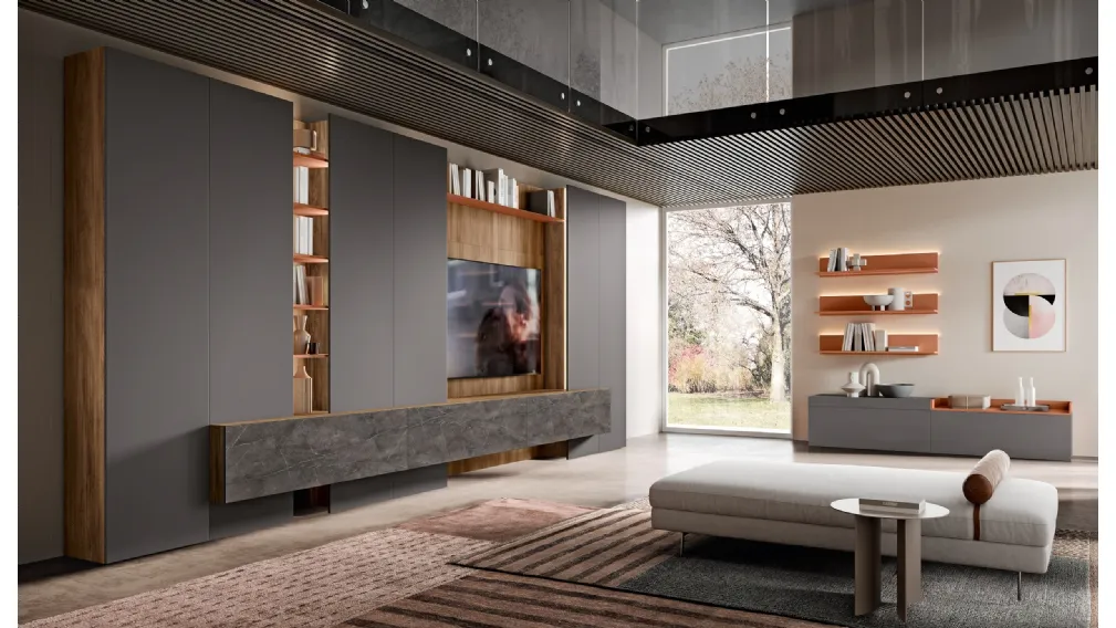 Clicca e scopri di più sulla parete attrezzata Evolution H2O 14 e 15 della firma Adriatica: è la soluzione dalle linee moderne ideale per te.