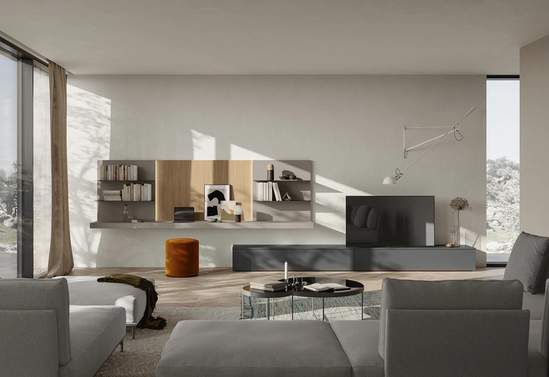 Vuoi arredare un soggiorno pratico e operativo? Ti presentiamo la parete attrezzata Night & Day L02 Colombini Casa dalle forme decise moderne.