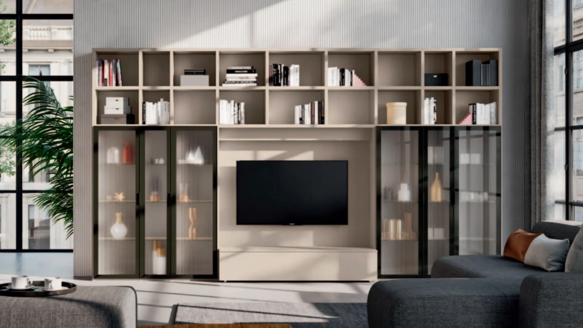 Se desideri completare un living pratico e operativo dalle linee moderne, ti presentiamo la parete attrezzata Day 24 Orme.
