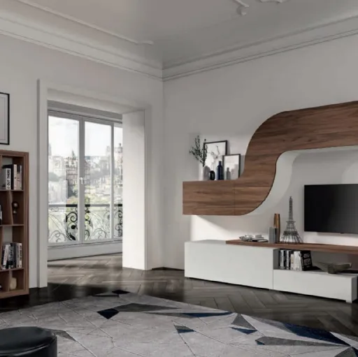 Se vuoi ultimare un living pratico e dinamico dalle linee moderne, ecco a te la parete attrezzata Flor 47F02 Madreperla e Creta Fasolin.