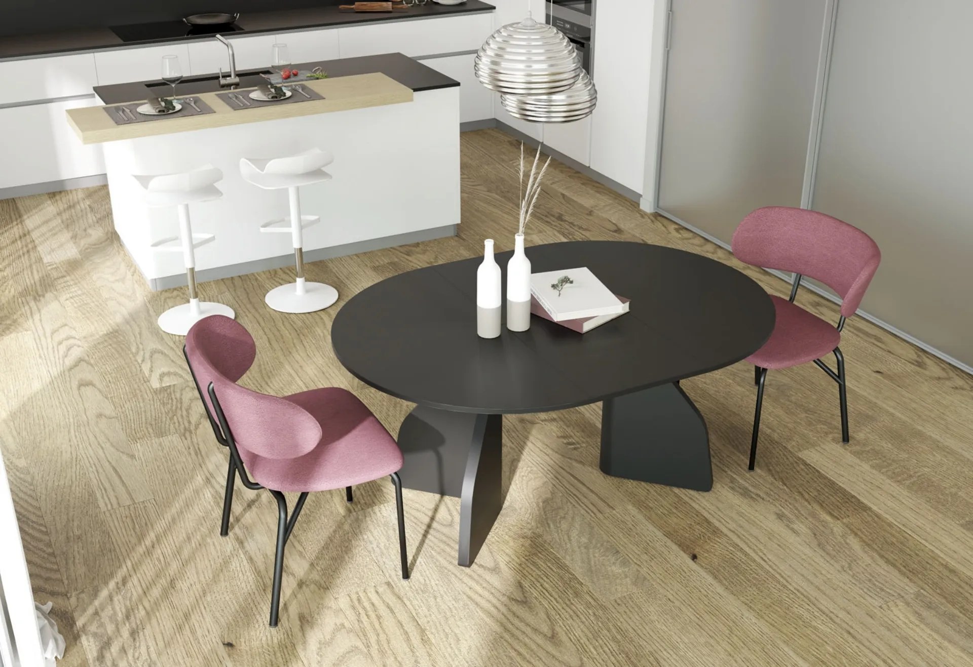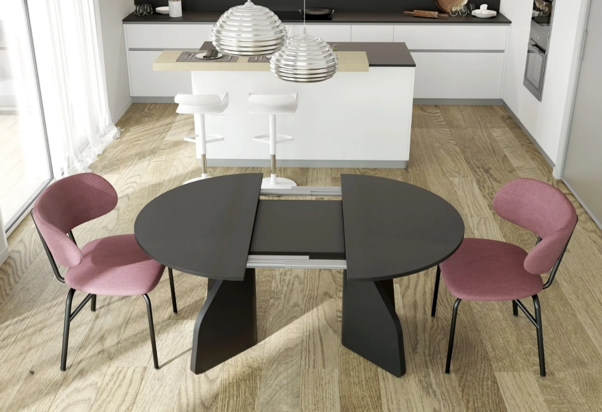 Se vuoi assicurarti un certo stile nei locali domestici, ma vuoi anche sfruttare bene forma e dimensioni delle stanze, allora le nostre soluzioni fanno per te. Tavolo rotondo allungabile Wing in melaminico nero di Zamagna: nel nostro showroom ti attende una gamma praticamente infinita di composizioni di alto contenuto estetico. I Tavoli sono tra i mobili e complementi più importanti dell'ambiente giorno e dell'ambiente cucina, ambienti dedicati alla convivialità dove si chiacchiera con amici e parenti. Uno tra i nostri modelli di Tavoli allungabili saprà valorizzare il tuo concept d'arredo con funzionalità e stile. Un tavolo che si rispetti deve essere in materiali di qualità, in modo che sia resistente e preservi negli anni le doti estetiche che lo contraddistinguono.