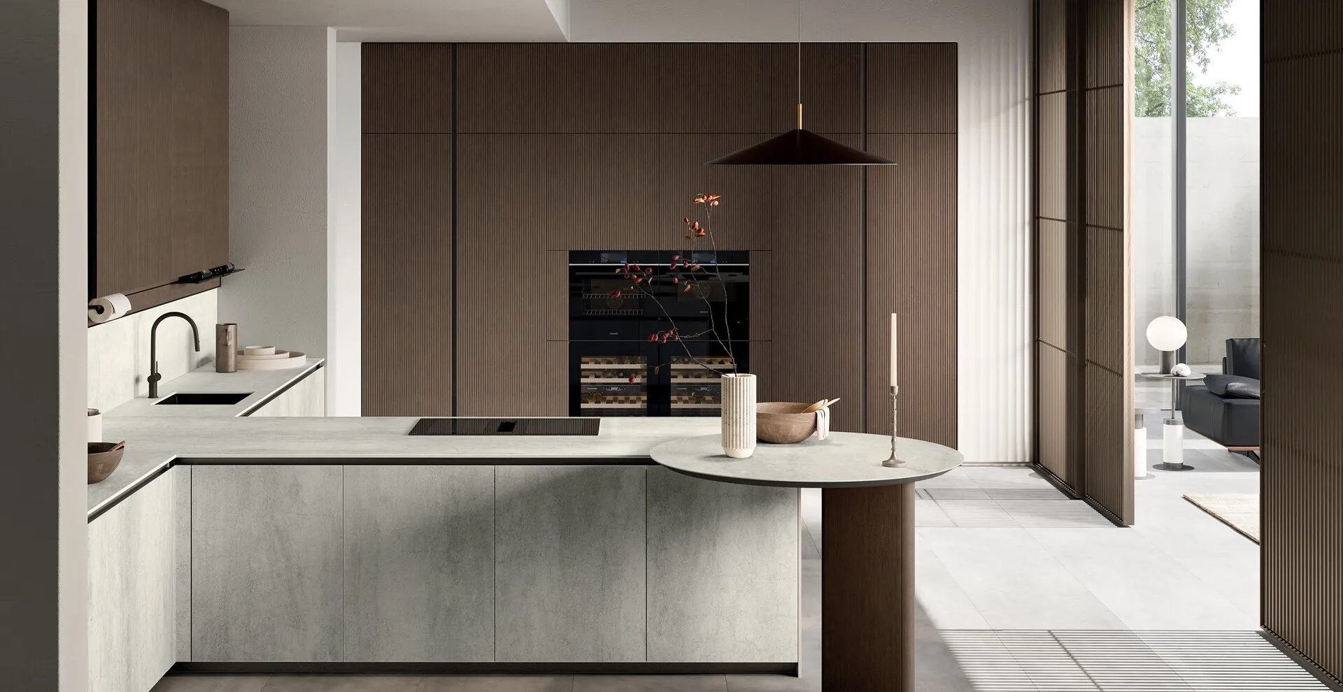 Se vuoi una cucina moderna Arredo3, Glass 2|0 06 in gres ti attende nel nostro negozio di Cucine Moderne con penisola.