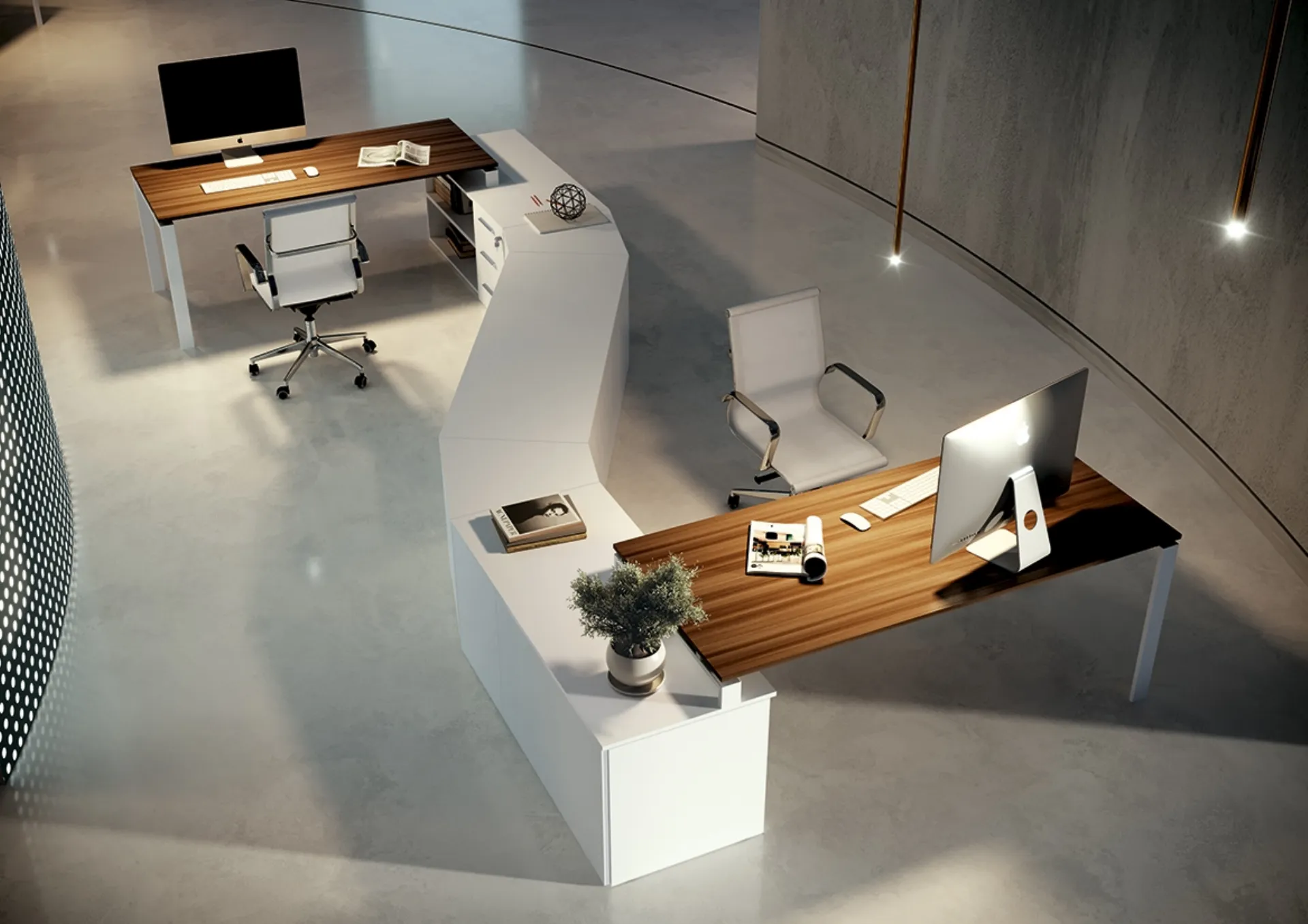 Cerchi Arredo Ufficio dei migliori brand? Scopri le differenti soluzioni di scrivanie operative in melaminico, come il modello Loft Operativa Anello Aperto di Colombini Office.