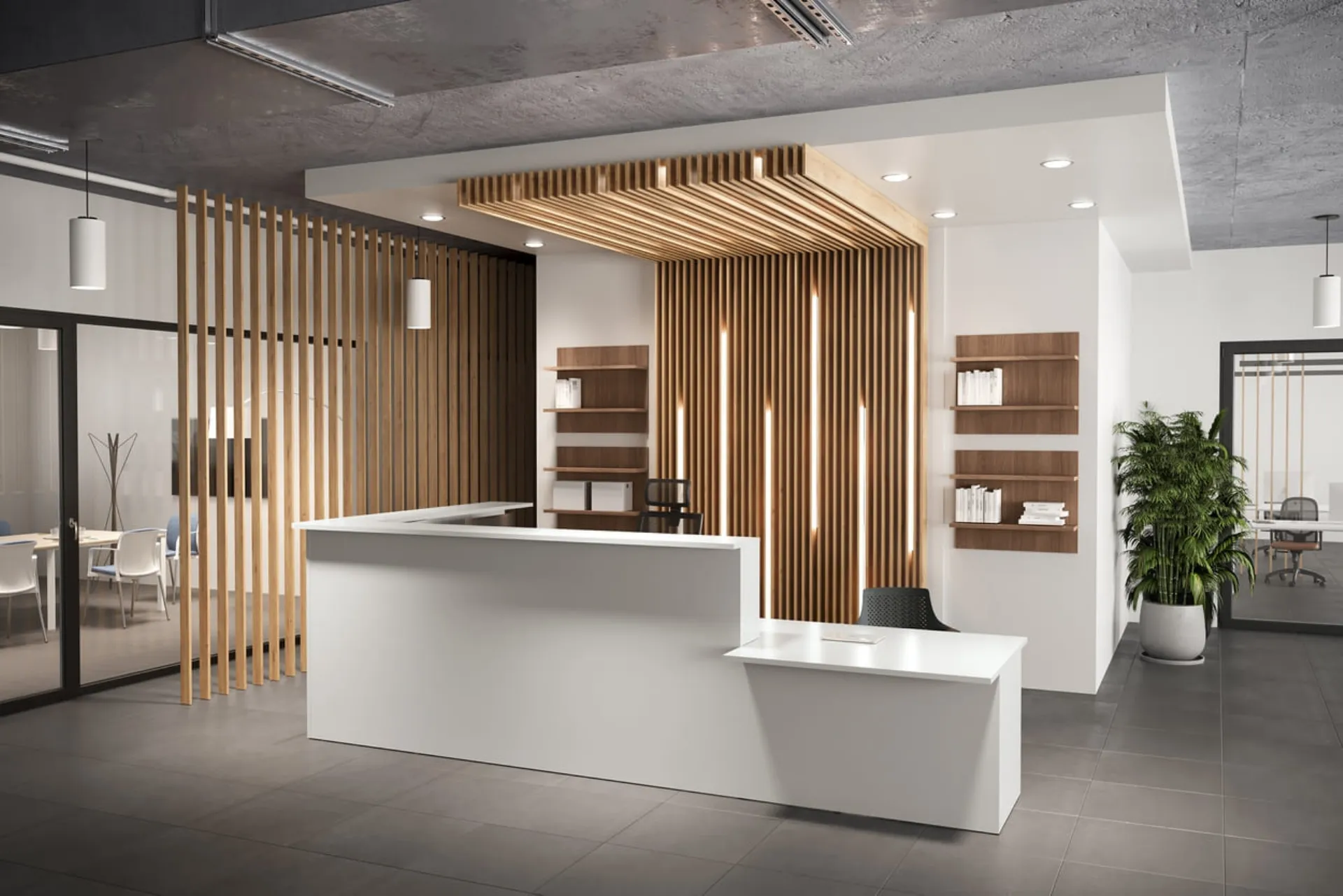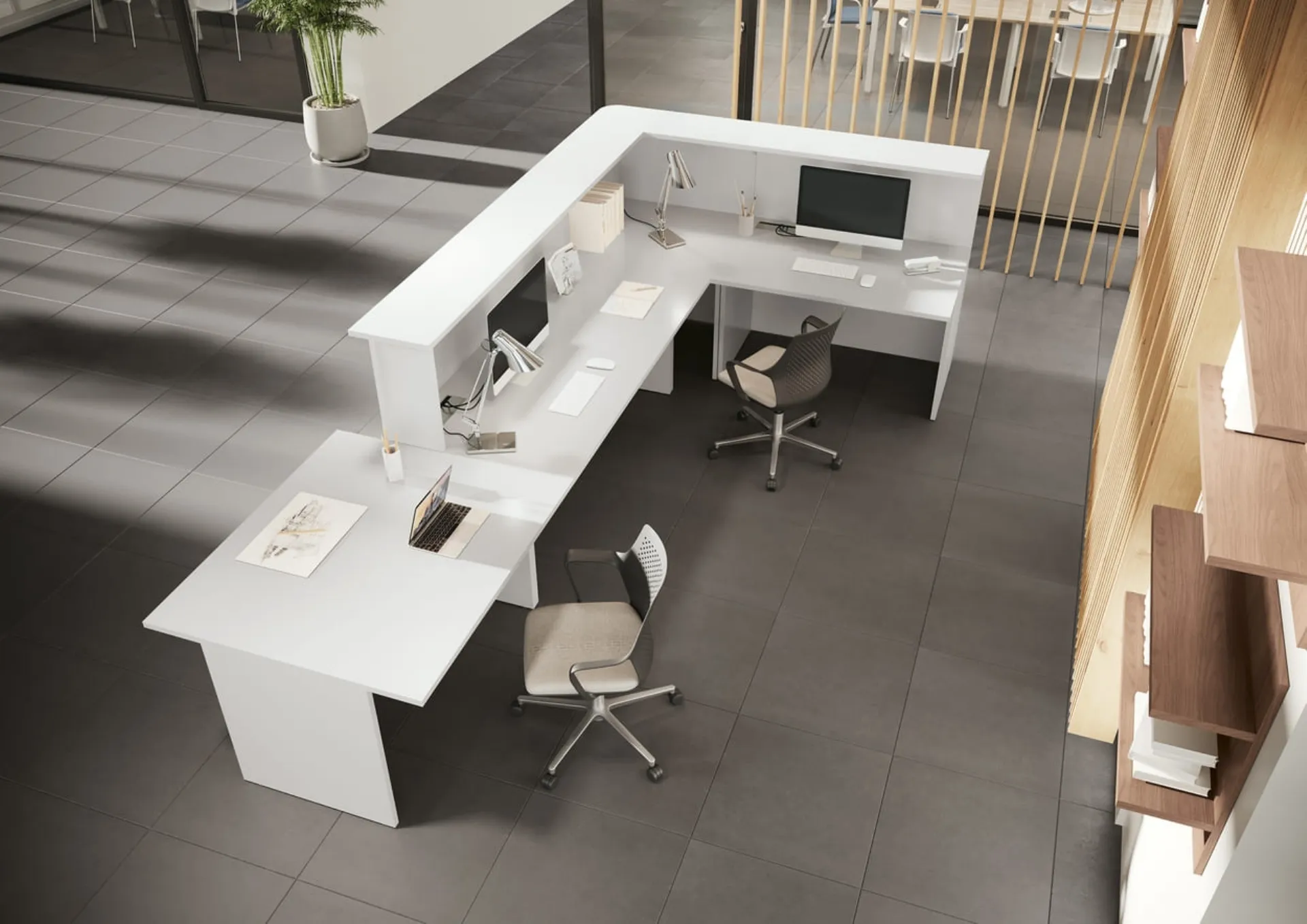 Se vuoi completare l'ambiente lavorativo, ti presentiamo il modello Reception Bianca di Compir tra differenti soluzioni di banconi reception.